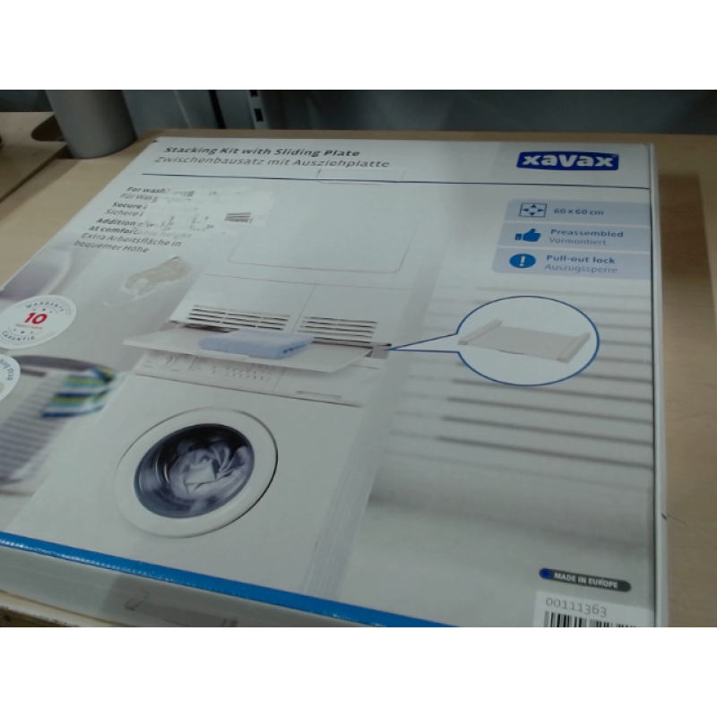 De Xavax-wasmachine stapelkit met schuiflade is een tussenstuk die je kunt gebruiken om je droger veilig op je wasmachine te plaatsen. De handige schuiflade geeft je de mogelijkheid om je kleding netjes te orderen.