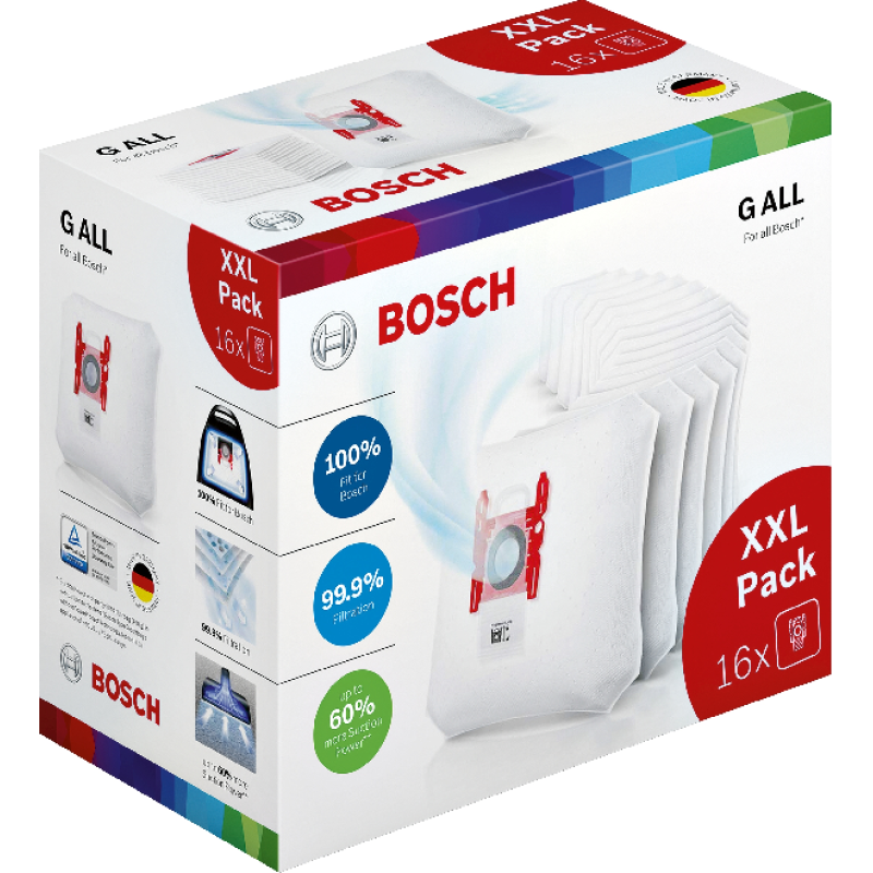 De Bosch BBZ16GALL bestaat uit 16 PowerProtect stofzuigerzakken van Type G ALL. In vergelijking met traditionele stofzuigerzakken maken de PowerProtect stofzuigerzakken tot 60% meer zuigkracht mogelijk: zelfs als de stofzak zich vult. De stofzuigerzakken filteren liefst 99,9% van de stofresten. Bovendien zorgt de hoge stofopname ervoor dat je tot 50% langer met de Bosch BBZ16GALL stofzak doet. Aangezien de zakken zelfsluitend zijn, kun je deze verwijderen zonder dat het stof uit de zak wordt geblazen. De custom-fit stofzaksluiting houdt het stof weg van de motor. Dit vergroot de kans op een lange levensduur van je Bosch- of Siemens-stofzuiger.