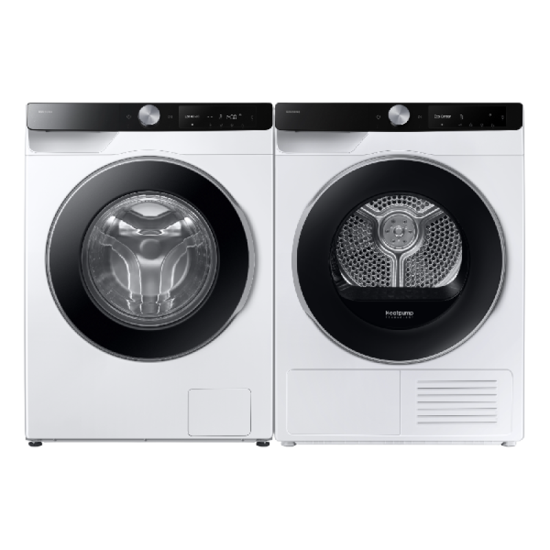 De Samsung-warmtepompdroger DV90DG6845LKU3, uit de AI Dry 6000-serie, combineert slimme technologie met een strak, eigentijds design in helder wit, met een transparante deur met zwarte rand. Dankzij de standaardafmetingen van 85 cm hoog, 60 cm breed en 60 cm diep past dit toestel moeiteloos in elke wasruimte. Met zijn royale capaciteit van 9 kilo biedt deze droogkast voldoende ruimte voor grotere ladingen, zoals beddengoed, handdoeken of een complete gezinswas. Tot slot verhoogt de omkeerbare deur het gebruiksgemak: je kiest zelf de openingsrichting die het beste past bij je wasruimte.