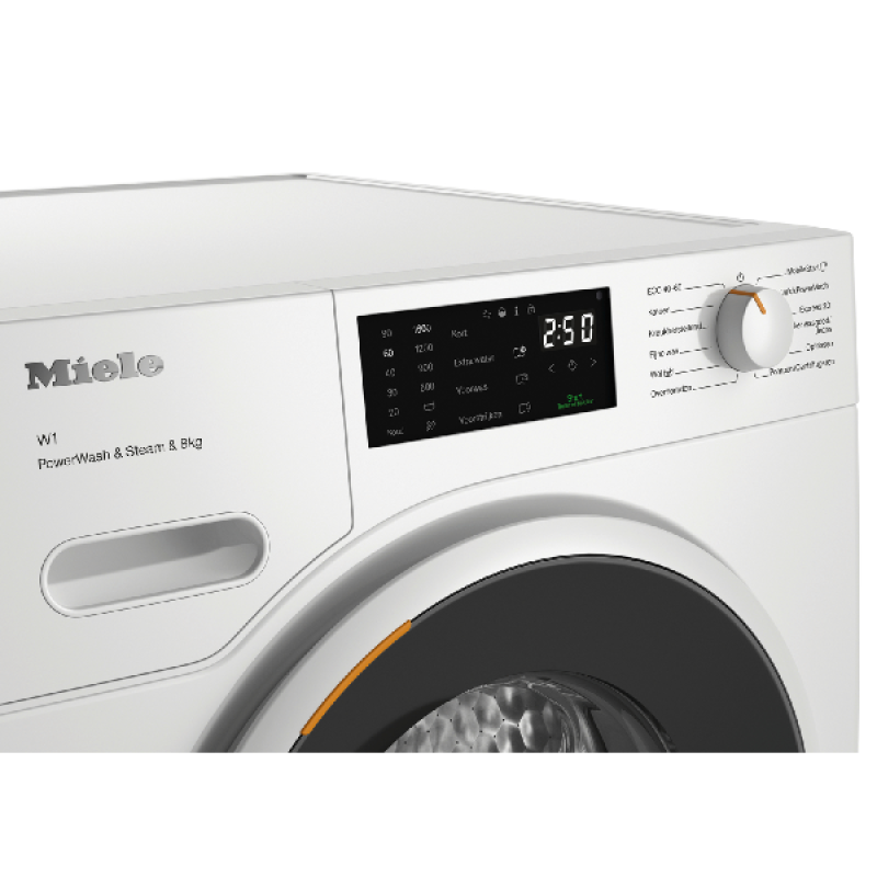 Met de Miele WWC 380 WCS PowerWash & Steam haal jij een zuinige krachtpatser in huis. Deze wasmachine, met 8 kilo vulgewicht en een hoog toerental van 1.600 omwentelingen per minuut, wordt aangedreven door een krachtige, duurzame en stille ProfiEco-motor, die bijdraagt een de lage energieklasse: maar liefst 20% zuiniger dan energielabel A. Ook de slimme beladingsherkenning helpt hierbij. Die meet hoe zwaar je waslading is en past hier vervolgens het water- en stroomverbruik op aan. Zo gebruikt hij alleen wat je nodig hebt, en niet meer. Dankzij PowerWash kun jij bovendien keer op keer rekenen op een grondige reiniging met minimaal verbruik. Door het water en wasmiddel gelijkmatig te verdelen, wordt het wasgoed zeer efficiënt en snel gereinigd. Dit merk je met name bij QuickPowerWash: door slim gebruik te maken van het Spin&Spray-systeem wast de machine een volledige lading in slechts 49 minuten. Zonder in te boeten op wasprestaties. Met SteamCare maakt hij tevens korte metten met geurtjes en kreuken. De SoftCare-trommel is daarnaast zo ontworpen dat je kleding beter wordt beschermd, zodat je langer van je favoriete outfits kunt genieten. Heb je kleding die een speciale behandeling nodig heeft? Deze wasmachine van Miele heeft een lade voor CapDosing-capsules (afzonderlijk verkrijgbaar) voor een grondige behandeling op maat. Wil je nog meer uit deze Miele-wasmachine halen? Koppel hem dan met de Miele@home-app voor nog veel meer mogelijkheden.