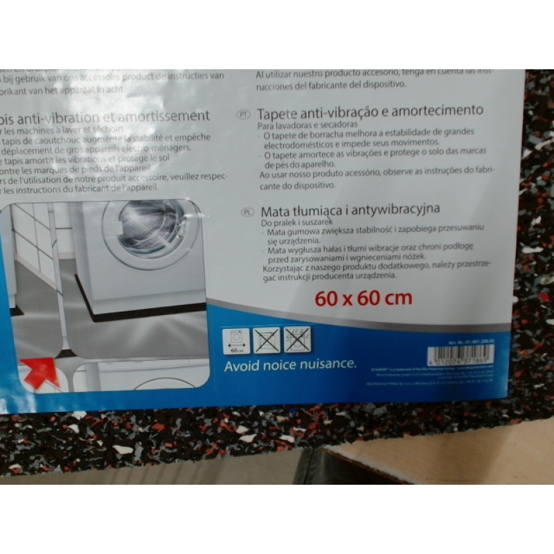Leg de Scanpart anti-trillingsmat onder je wasmachine of droger en hij zorgt ervoor dat je minder last hebt van trillingen en geluid van je apparaten. Je wasmachine of droger schuift niet meer zomaar weg, omdat deze Scanpart-mat de trillingen dempt. Zo beschermt hij ook je vloer, zowel gladde oppervlakken als tapijt. Ook wordt het stiller in huis, doordat de anti-trillingsmat het geluid van je wasmachine of droger vermindert. Je kunt de mat ook buitenshuis gebruiken tegen verschuivende objecten, bijvoorbeeld in je werkplaats of in de kofferbak van de auto.