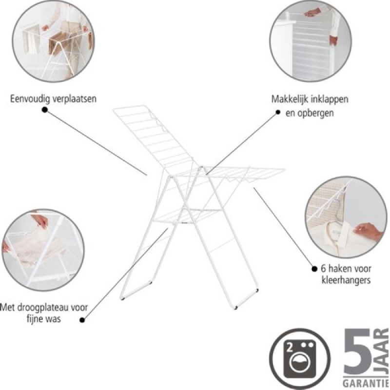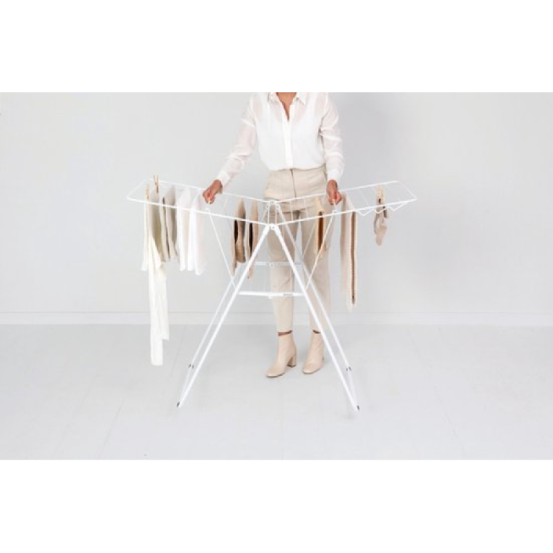 Het Brabantia HangOn droogrek biedt 20 meter aan droogruimte, geschikt voor grote en kleine wasjes. Dankzij het slimme inklapbare ontwerp past het in elke ruimte en is het eenvoudig op te bergen. De stevige constructie zorgt voor stabiliteit, zelfs bij zwaardere kledingstukken. Handig voor binnengebruik en handig voor wie geen vaste waslijn wil. Met zijn strakke witte afwerking is dit rek zowel functioneel als stijlvol in je interieur. Duurzaam geproduceerd en makkelijk in gebruik.