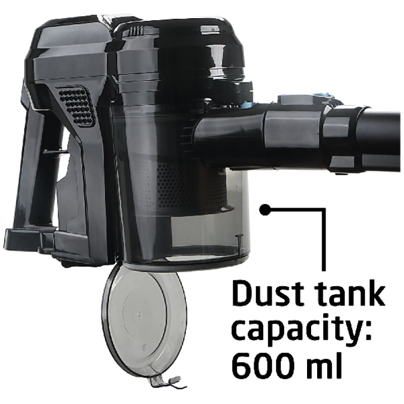 De handstofzuiger KVR 22225 van Koenic in zwart biedt krachtige reiniging in een compact formaat. Met een vermogen van 130 watt en een zuigkracht van 8 kPa verwijdert hij stof, kruimels en dierenharen van harde vloeren, meubels en bekleding. Dankzij de oplaadbare 2600 mAh-batterij geniet je tot 45 minuten van draadloos schoonmaken. De wasbare filter en het ruime stofreservoir van 0,6 liter maken onderhoud eenvoudig. De oplaadindicator en het stofreservoirdisplay houden je steeds op de hoogte van de status. Met zijn lichte gewicht van 1,125 kilo en de bijgeleverde kieren- en meubelzuigmond bereik je zelfs lastige hoekjes. De Koenic KVR 22225 wordt geleverd met wandhouder en adapter voor handig opladen en opbergen.