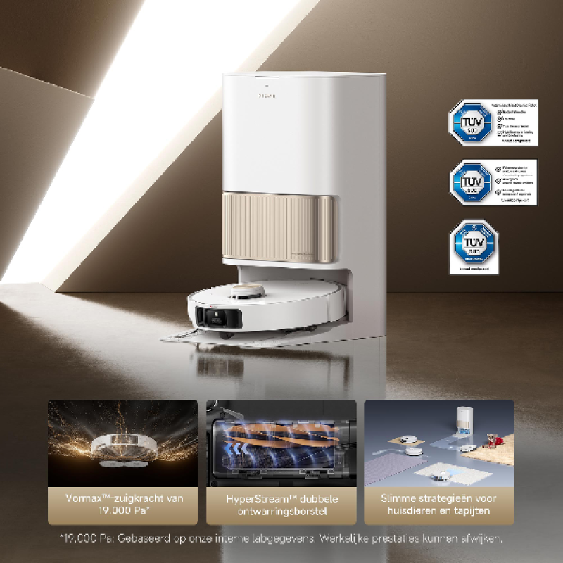 Onder de elegante behuizing schuilt pure kracht. De Vormax-motor genereert tot 19.000 Pa zuigkracht, terwijl het dweilsysteem gelijktijdig vocht en vuil verwijdert. Zo worden kruimels, stof en opgedroogde vlekken in één doorgang aangepakt. De HyperStream dubbele ontwarringsborstel combineert rubber en TPU-materiaal, waardoor haren niet vastlopen en onderhoud minimaal blijft. Dankzij de accu met een vermogen van 5.200 mAh reinigt de robot tot 180 minuten onafgebroken. Harde vloeren, voegen of tapijten, de L40s Pro Ultra past zich aan elk oppervlak aan en levert telkens een diepe, frisse schoonmaakbeurt.