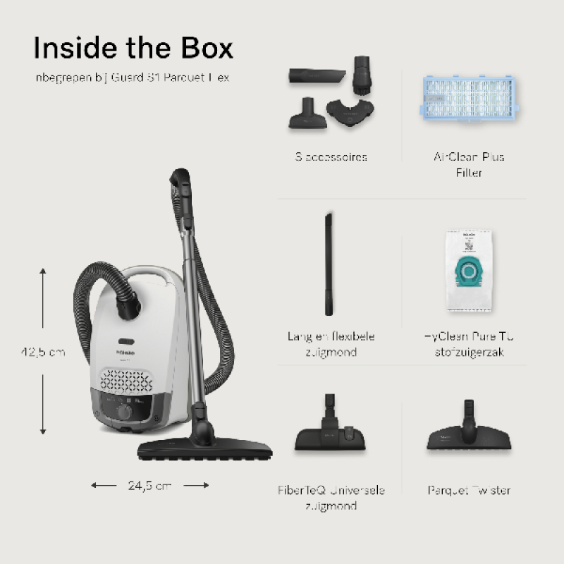 MIELE Guard S1 Parquet Flex Stofzuiger met zak Briljantwit
