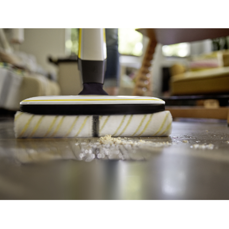 De witte Kärcher FC 7 Cordless draadloze vloerreinger maakt simultaan dweilen en stofzuigen kinderspel. Dankzij zijn 2 rollensets die in tegengestelde richting draaien, verwijdert hij droog en nat vuil in één doorgang. Zo bespaar je tot 50 procent tijd vergeleken met traditioneel dweilen. De roltechnologie garandeert een diepe, gelijkmatige reiniging die tot 20 procent krachtiger is. Vloeren drogen bovendien snel, zodat je meteen weer verder kunt. Tot slot biedt het snoerloze ontwerp alle vrijheid om moeiteloos door de kamer te bewegen, zonder te hoeven stoppen of van stopcontact te wisselen.