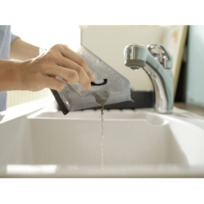 Schoon water hoort op je vloer, niet erin. Daarom scheidt de dubbele watertank het vuile en schone water zorgvuldig. Tijdens het reinigen wordt het gebruikte water continu afgevoerd naar de vuilwatertank, terwijl vers water de vloer reinigt. Zo geniet je van een echt hygiënisch resultaat, zonder strepen of resten. Slimme pictogrammen lichten op zodra één van beide reservoirs aandacht nodig heeft. En na gebruik spoelt het automatische reinigingsprogramma de borstels en leidingen af terwijl jij enkel de tanks hoeft te legen.