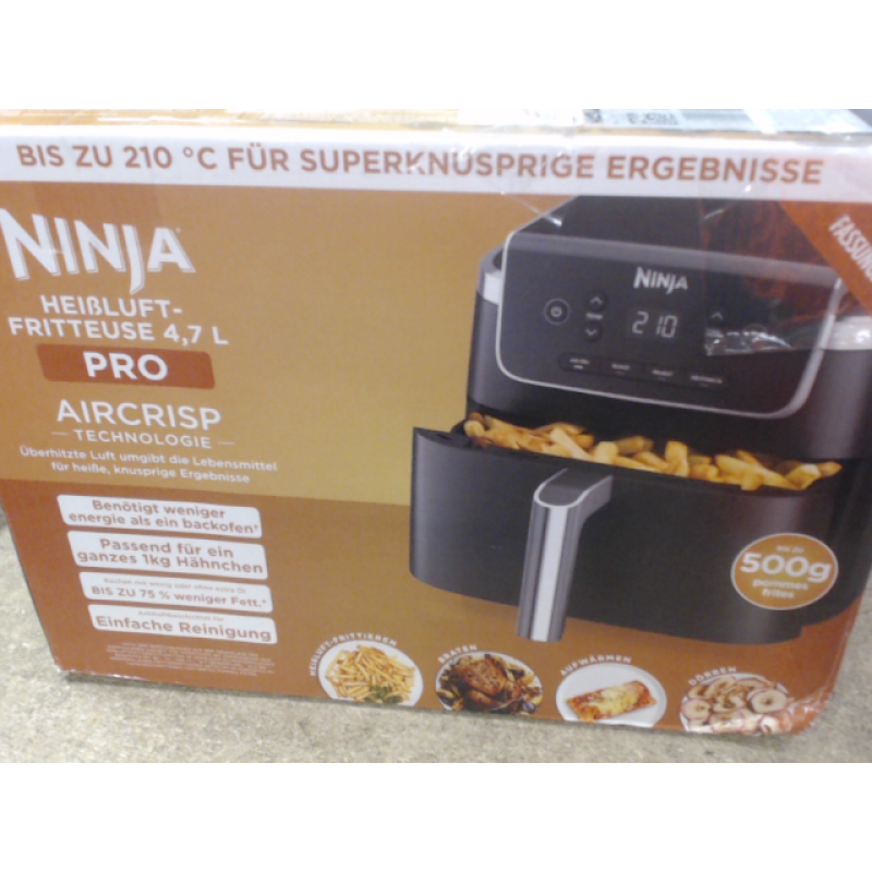 De Ninja Pro AF140EU heteluchtfriteuse in het zwart heeft een compact ontwerp dat weinig ruimte inneemt op het aanrecht en daardoor geschikt is voor kleinere keukens. Met afmetingen van 28,5 x 26,5 x 26 (B/H/D) past dit model eenvoudig tussen andere apparaten. De frituurmand van 4,7 liter is ruim genoeg voor maaltijden voor 1 à 2 personen, zoals een kilo kip of zo’n 500-gram friet. Dankzij het gewicht van 4,8 kilo verplaats je de airfryer zonder moeite wanneer je hem wilt opbergen.