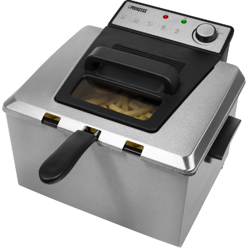 In de Princess 185000 Friteuse bak je in één keer genoeg frietjes voor het hele gezin. De frituurpan heeft namelijk een ruime inhoud van 5 liter en dankzij het krachtige vermogen is hij na 5 minuten al op temperatuur. Om te voorkomen dat restjes in het vet komen en verbranden, is de friteuse voorzien van een koude zone: kleine stukjes die door het mandje heen vallen komen hierin terecht. Je hebt de keuze uit frituren in de grote mand, of de twee medium mandjes voor bereiding van verschillende snacks tegelijk. De binnenpan van de 185000 Friteuse is uitneembaar en vaatwasmachinebestendig. Dankzij de handige deksel met filter wordt frituurlucht beperkt, en via het kijkvenster houd je jouw snacks in de gaten.