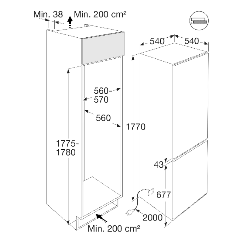 ETNA KCS7178 - Inbouw Koel-vriescombinatie - Nishoogte 178 cm