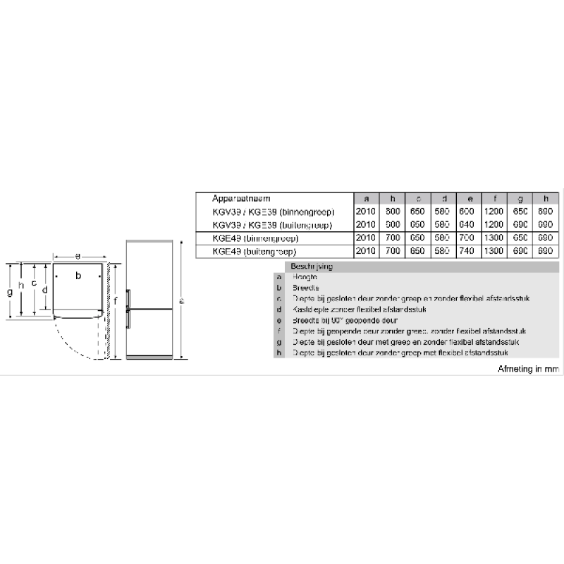 Producttype Koel-vriescombinatie