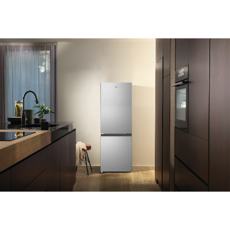 De ETNA KCV343RVS is een vrijstaande koel-vriescombinatie met een strak rvs design dat goed past in kleinere keukens, studio’s of studentenkamers. Met afmetingen van 49,5 x 143 x 56,2 cm (B/H/D) neemt het toestel weinig vloeroppervlak in en plaats je het eenvoudig tegen een wand of in een nis. De verwisselbare deurscharnieren maken zowel links- als rechtsdraaiende montage mogelijk, waardoor je flexibel blijft bij de plaatsing. Het slanke ontwerp combineert een functionele indeling met een rustige uitstraling die aansluit bij uiteenlopende keukenstijlen.