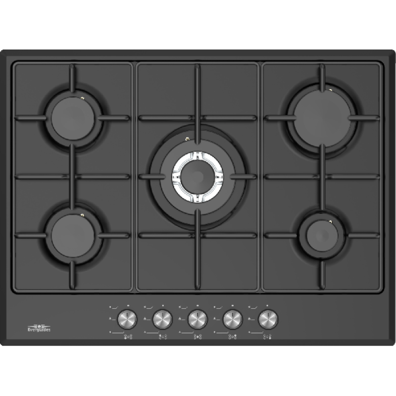 Rust je keuken uit met de Everglades EVBI8512, een ruime gaskookplaat waarop jij al je kookkunsten kunt uitleven. Deze inbouwkookplaat heeft 5 gaspitten, waaronder een extra grote wokbrander in het midden. Ondanks zij XL-formaat kan hij gewoon worden ingebouwd in een standaardnis van 60 cm breed. Je pannen staan stevig en veilig op de emaillen pannendragers en met het oog op veiligheid wordt de gastoevoer onmiddellijk afgekapt zodra de vlam wegvalt. Bovendien springt deze gaskookplaat met zijn volledig matzwarte design direct in het oog. Met dit exemplaar kook jij in stijl.<.p>