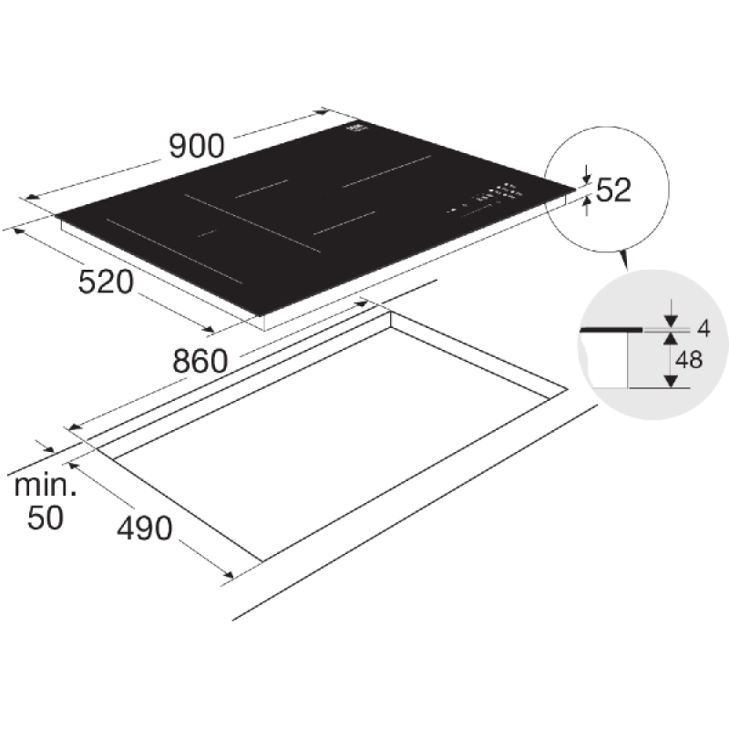 ETNA KIF890ZT Kookplaat - Inbouw - Inductie - 2-fasen (Perilex) - breedte 90 cm