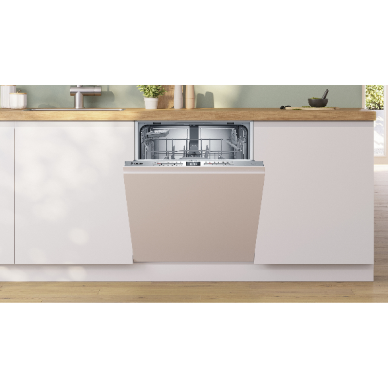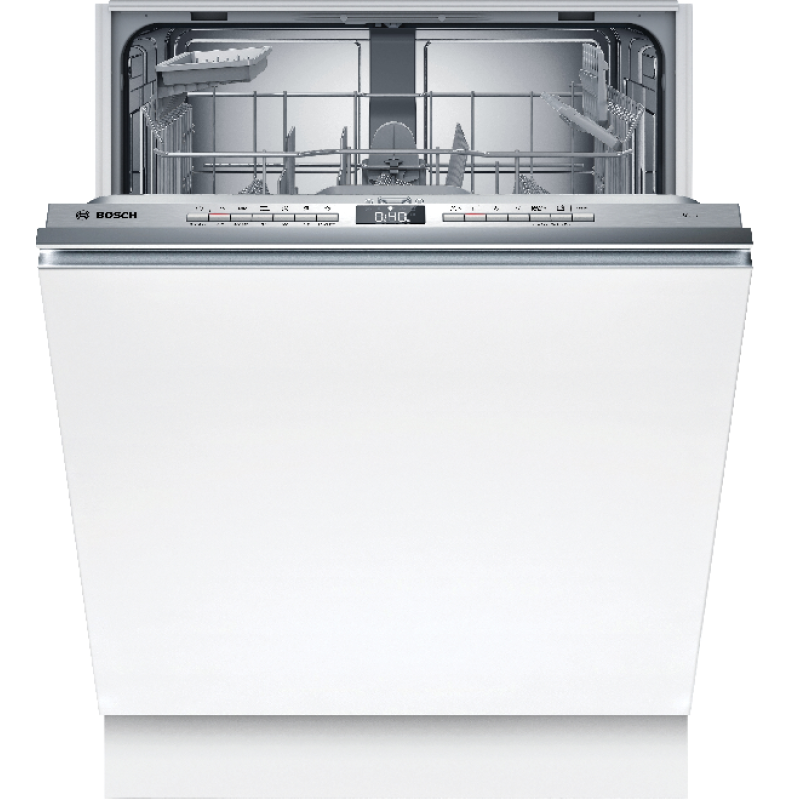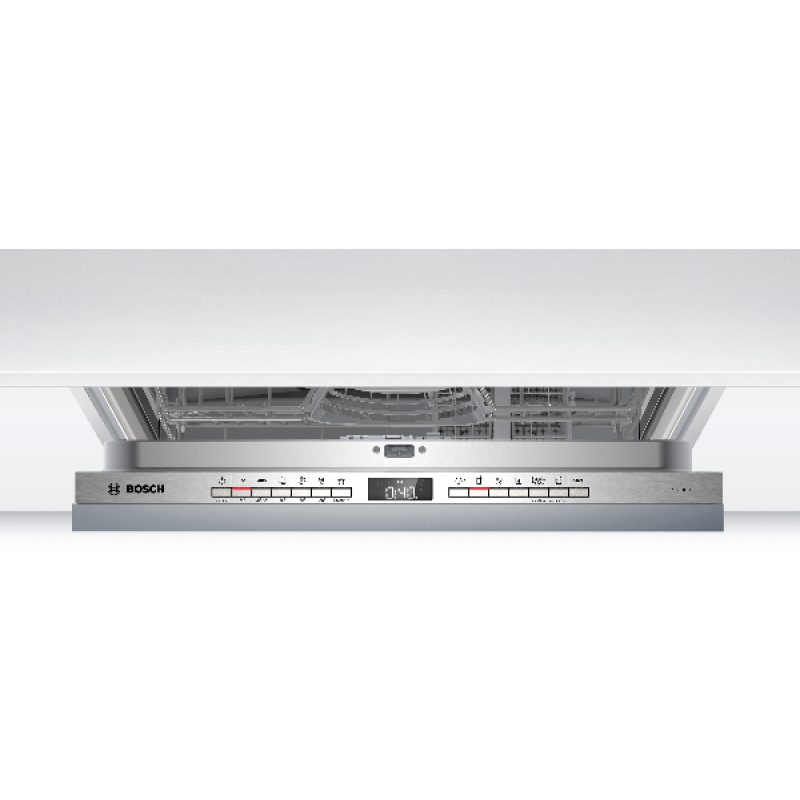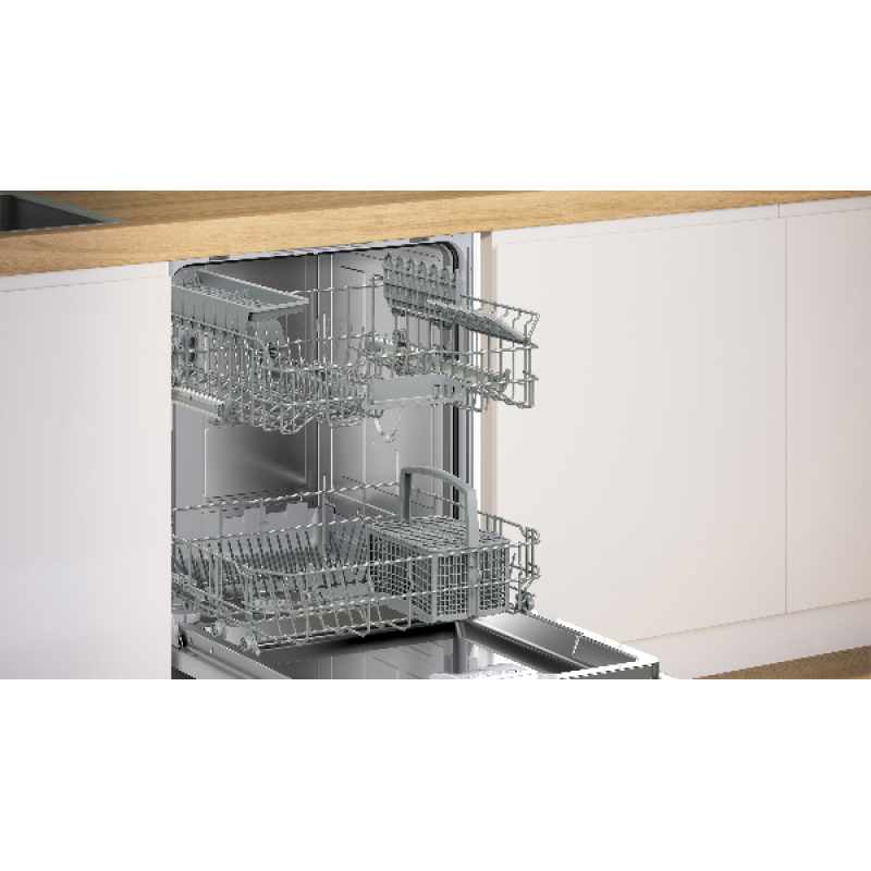 Deze SBV4HTX11E inbouwvaatwasser van Bosch van de Serie 4 past met zijn standaardafmetingen discreet in elke inbouwkeuken. Hij heeft een capaciteit van 13 couverts en daarmee een aanwinst voor grotere huishoudens. De vaatwasser levert uitstekende prestaties : hij verbruikt slechts 9 liter water en 0.74 kWh per cyclus en stoot maar 46 dB(A) uit dankzij de EcoSilence Drive motor. Het toestel beschikt over 2 praktische Vario-korven : een flexibele en praktische oplossing om je vaatwasser eenvoudig in te ruimen. De bovenste korf is in hoogte verstelbaar om - wanneer nodig - hoge glazen in te ruimen. De flexibele onderste lade met een afneembare bestekmand en het EasySlide uittreksysteem is geschikt voor borden, pannen en grote schalen. De 6 beschikbare programma’s (Eco, Auto 45-65°C, Intensief, Quick L, Nachtprogramma, Favoriet) met 4 temperatuurniveaus van 45 °C tot 70 °C maken alles van delicaat glaswerk tot grote borden even schoon. Dankzij de praktische functies - Extra droog, Halve belading, uitgestelde start en het EasyClean reinigingsprogramma - maak je alles optimaal schoon. Je selecteert het programma van je keuze met de drukknoppen aan de binnenkant van de deur of op afstand met de HomeConnect-app of met spraakbesturing