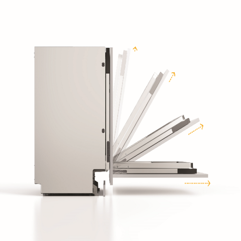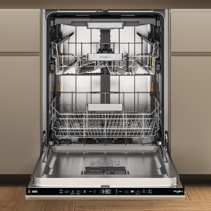 Rust je keuken uit met de Whirlpool W7I HT58-inbouwvaatwasser. Hij is groter dan je denkt, want dankzij de MaxiSpace-kuip heb je 10% meer ruimte dan in vergelijkbare vaatwassers. Met 15 couverts aan ruimte en een flexibele besteklade in plaats van een mand richt jij het apparaat helemaal naar wens in. Moet je grote spullen afwassen? Dan verstel je gewoon het bovenrek, zodat je meer ruimte hebt. Net als veel andere producten van Whirlpool heeft ook deze vaatwasser 6th SENSE-technologie: sensoren meten hoe vuil de was is, waarna de tijd en hoeveelheid water hierop aan worden gepast, waardoor er nooit meer wordt gebruikt dan nodig. Met het 6th SENSE-programma bespaar je tot wel 50% aan energie, water en tijd! In totaal heb je keuze uit 8 veelzijdige programma’s voor elke gelegenheid. Aan het eind van een cyclus gaat de deur alvast een stukje open, zodat de vaat op natuurlijke wijze droogt. En een bijkomend voordeel is dat deze vaatwasser heerlijk stil is, met een geluidsniveau van slechts 38 decibel.