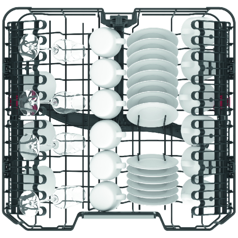 (+) Voor grote gezinnen: de ruime capaciteit van 14 couverts biedt genoeg plek voor al je vaat na een drukke dag of een feestje.