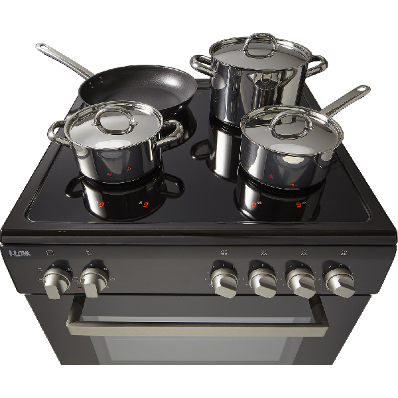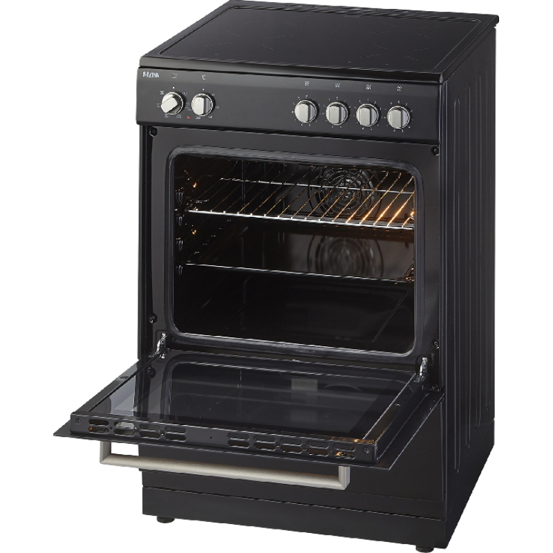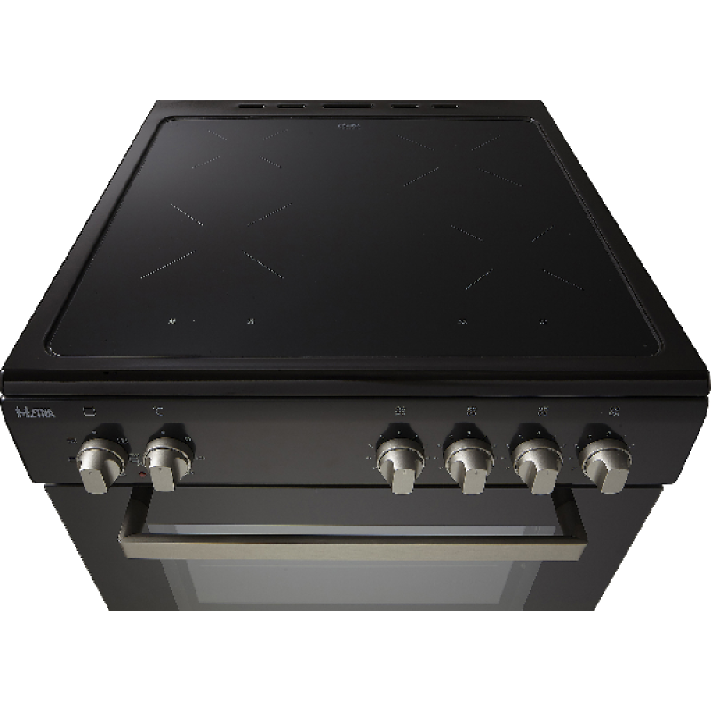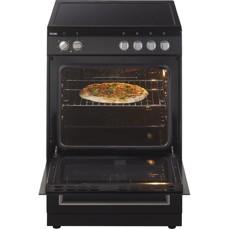 De Etna FIV560ZWA is een 60 cm breed 4-pits inductiefornuis met een elektrische oven. De kookzones bedien je eenvoudig met draaiknoppen en beschikken over 10 kookstanden inclusief boostfunctie. Ook is dit model voorzien van Virtual Pan Support. Dit design helpt bij het optimaal positioneren van de pan waardoor je het maximale vermogen uit je kookplaat haalt. De ruime multifunctionele oven is voorzien van hetelucht, boven- en/of onderwarmte en beschikt daarnaast ook over een grill en verlichting. Met een oveninhoud van 65 liter is er voldoende ruimte voor pizza’s, taarten en heerlijke ovenschotels. Dankzij de geëmailleerde ovenruimte en de vlakke glazen ovendeur is ook het schoonmaken snel gedaan. Het fornuis is geschikt voor een 2-fasen aansluiting.