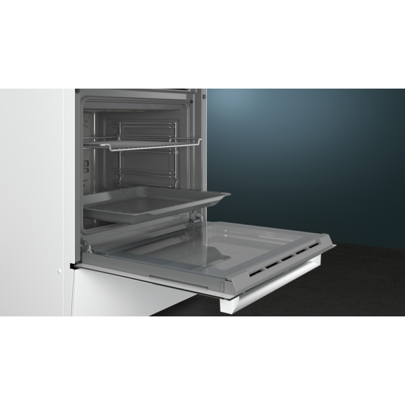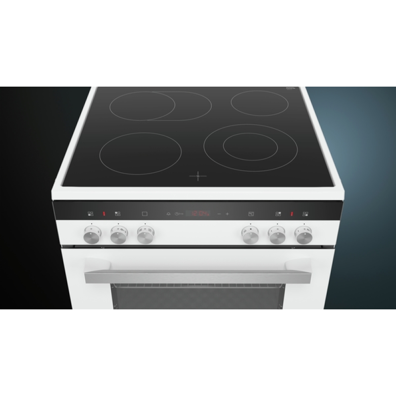 De Siemens HK9R3A220 is een wit fornuis met een keramische kookplaat. De kookplaat heeft 4 kookzones, waarvan 1 variabele kookzone en 1 uitbreidbare braadzone. Zo kun jij makkelijk via de sensorknop de diameter van de kookzone aanpassen aan de maat van jouw pan. Dit biedt jou meer flexibiliteit en bespaart energie. De oven met 66 liter inhoud beschikt over 7 verwarmingssystemen, waaronder 3D-hetelucht plus. Hiermee worden jouw koekjes op meerdere bakplaten tegelijkertijd goed gaar dankzij een gelijkmatige warmteverdeling.