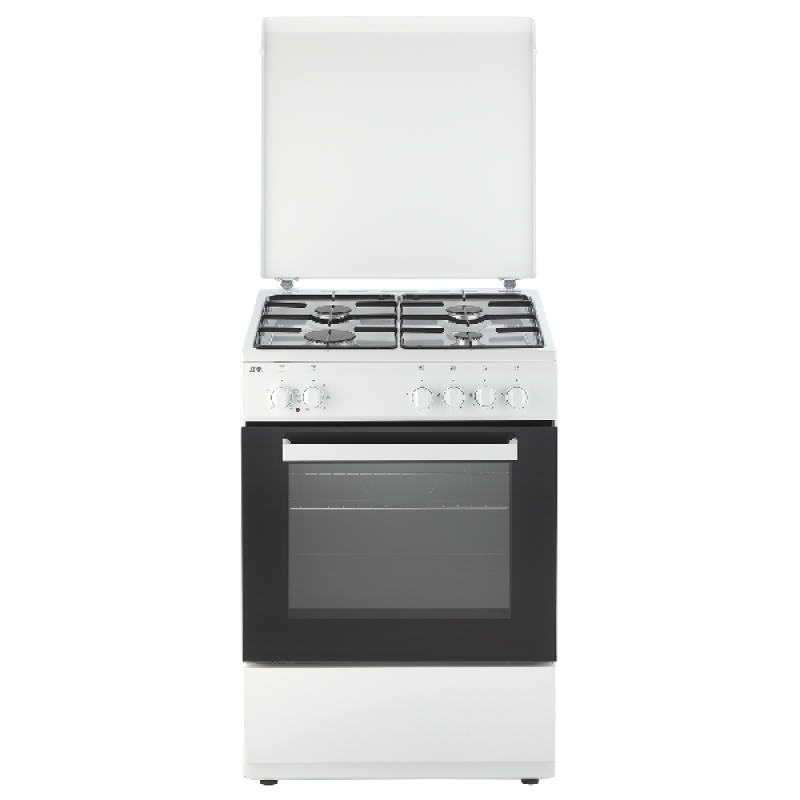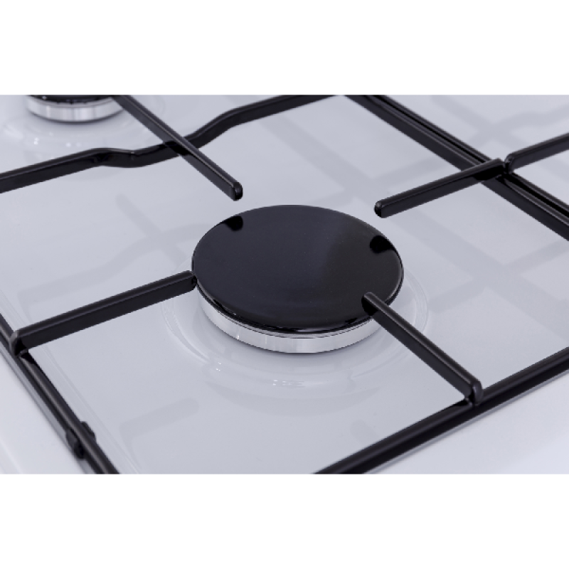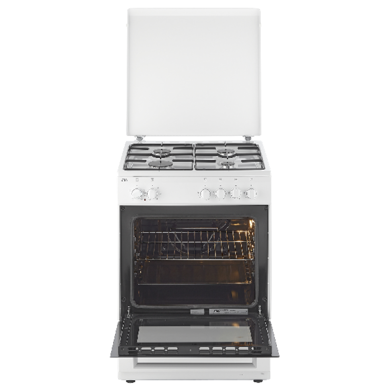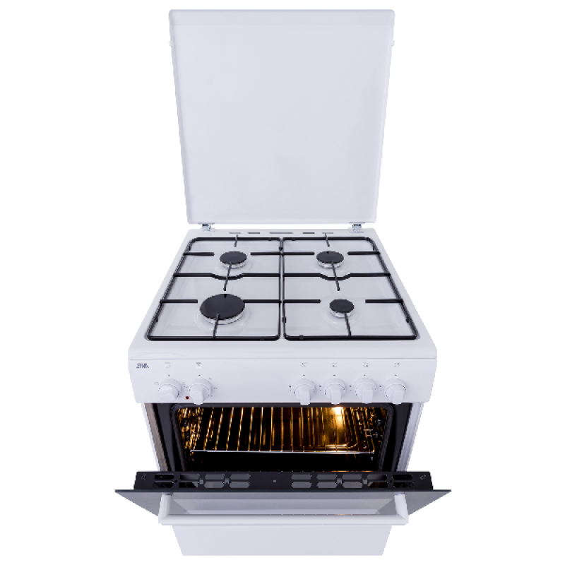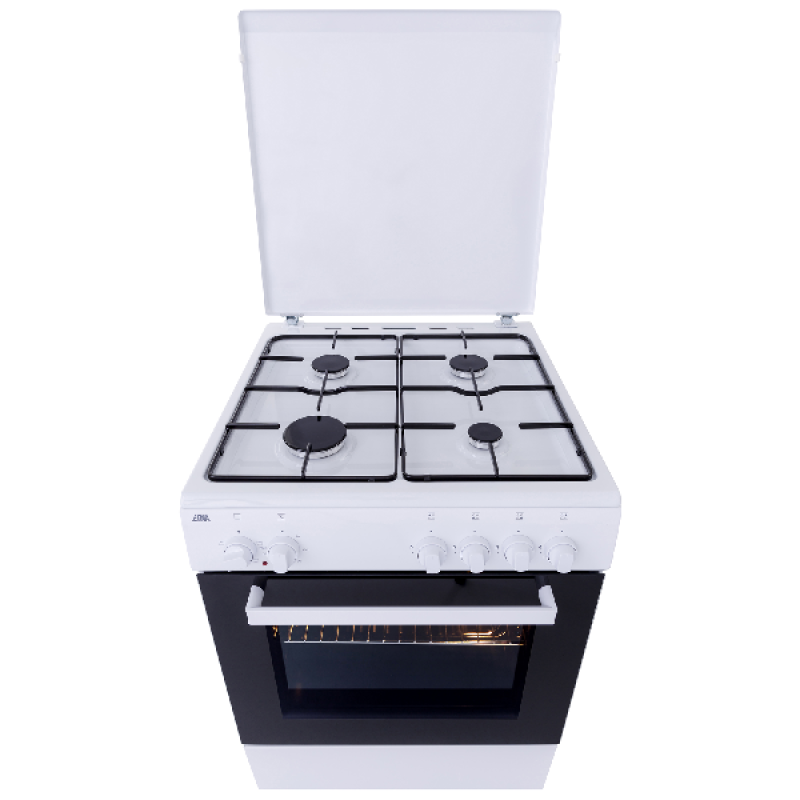 De Etna FGV160WIT is een gasfornuis met 4 kookzones en bandstalen pandragers. Het fornuis is voorzien van een gebruiksvriendelijk bedieningspaneel met draaiknoppen. Dit Etna-gasfornuis is voorzien van een oven met 72 liter inhoud. Deze oven biedt genoeg ruimte voor het bereiden van heerlijke ovengerechten. Met de draaiknoppen aan de linkerzijde stel je de gewenste oventemperatuur en het gewenste bakprogramma in. Je kunt kiezen uit conventioneel, boven- en onderwarmte, onderwarmte, bovenwarmte en grill.De Etna FGV160WIT is voorzien van vlambeveiliging, waardoor bij het wegvallen van de vlam automatisch de gastoevoer stopt. Dit fornuis is uitgerust met een geëmailleerde afdekplaat en is voorzien van energielabel A.
