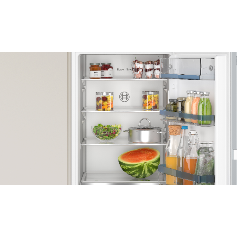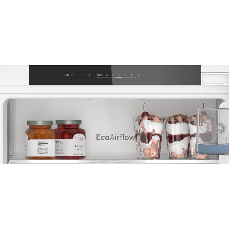 Een consistente temperatuur is essentieel voor het goed bewaren van je voedingswaren. Eco Airflow zorgt ervoor dat de koele lucht gelijkmatig door de hele binnenruimte wordt verdeeld, en dat de luchtvochtigheid ook overal hetzelfde is. Je etenswaren blijven zo langer vers en de smaak blijft langer behouden. Nieuwe boodschappen in de koelkast gelegd? Met SuperKoelen breng je tijdelijk de temperatuur omlaag, zodat ze razendsnel worden gekoeld. Na een aantal uur schakelt de functie automatisch weer uit, zodat je niet onnodig energie verbruikt. Dat is efficiënt koelen zonder zorgen.