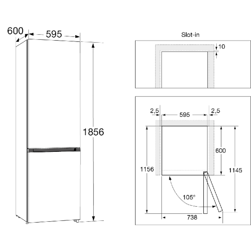 HISENSE RB5K330GSFC - Koel-vriescombinatie - breedte 59.5 cm - hoogte 185.6 cm - inhoud 215 l - NoFrost