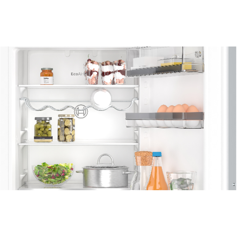 De koelkast is gemakkelijk in te delen door de verstelbare plateaus van Safety Glass. De koelkast of vriezer geeft een waarschuwingssignaal met licht of geluid wanneer de deur niet goed is gesloten of een ander probleem zich voordoet. Zo verbruik je nooit meer energie dan nodig en weet je precies wanneer er iets mis is. De EcoAirflow verdeelt de luchtvochtigheid en temperatuur continu gelijkmatig, waardoor je etenswaren langer vers blijven.