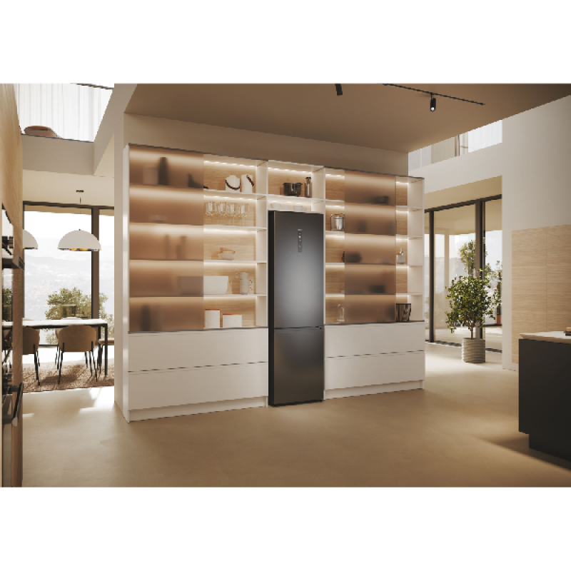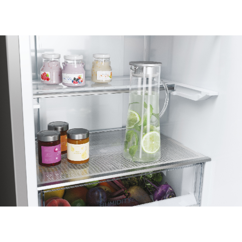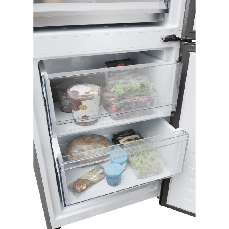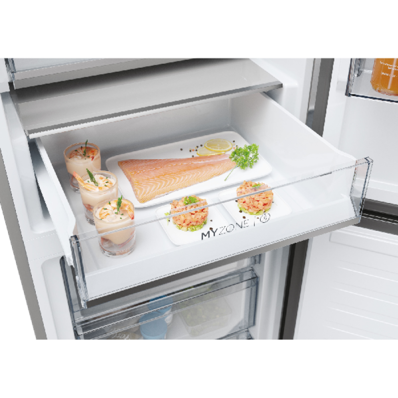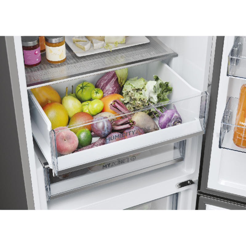 Til koelen naar een hoger niveau met de Haier HDPW5618CNPK. Deze ruime, vrijstaande koel-vriescombinatie houdt al je etenwaren koel en langer vers. En dat ook nog op een zuinige manier! Dit apparaat heeft namelijk energielabel A en is dus tot 67% zuiniger dan een koelkast uit de F-klasse. Voor versproducten heeft dit stijlvolle model maar liefst 2 Fresher Tech-lades, elk met hun eigen speciale functie: de MyZone-lade pas je helemaal aan op jouw wensen door zelf de gewenste temperatuur te selecteren (bijvoorbeeld de stand Seafood of Quickcool). De andere lade is een Humidity Zone, die de luchtvochtigheid constant op 90% houdt. Voor meer mogelijkheden koppel je de koel-vriescombi met de hOn-app. Zo schakel je namelijk de hulp van AI in, die bijvoorbeeld inspeelt op de weersverwachting en de temperatuur in de koelkast consistent houdt. Zo gaat de compressor langer mee, en jouw eten ook. Het vriesgedeelte ontdooien is bovendien niet nodig dankzij de handige No Frost-technologie.