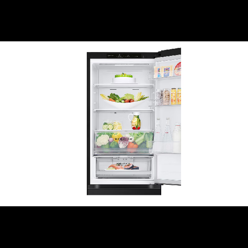 De LG GBV3100AEP is een zwarte koel-vriescombinatie met een energieklasse A, wat zorgt voor maximale energie-efficiëntie en lagere energiekosten. Met een totale capaciteit van 344 liter biedt dit model voldoende ruimte voor je dagelijkse boodschappen. De DoorCooling+™-technologie zorgt voor een snellere en gelijkmatigere koeling door luchtopeningen aan de voorkant, waardoor de temperatuur stabiel blijft en voedsel langer vers blijft. De LINEARCooling™-technologie beperkt temperatuurschommelingen tot ±0,5°C, wat helpt om de versheid van voedsel langer te behouden. Daarnaast zorgt de Inverter Linear Compressor voor een efficiënte en stille werking met een geluidsniveau van slechts 35 dB, en wordt geleverd met een garantie van 10 jaar. De afmetingen zijn 595 x 1860 x 675 mm (BxHxD), waardoor het een compacte en stijlvolle toevoeging is aan elke keuken.
