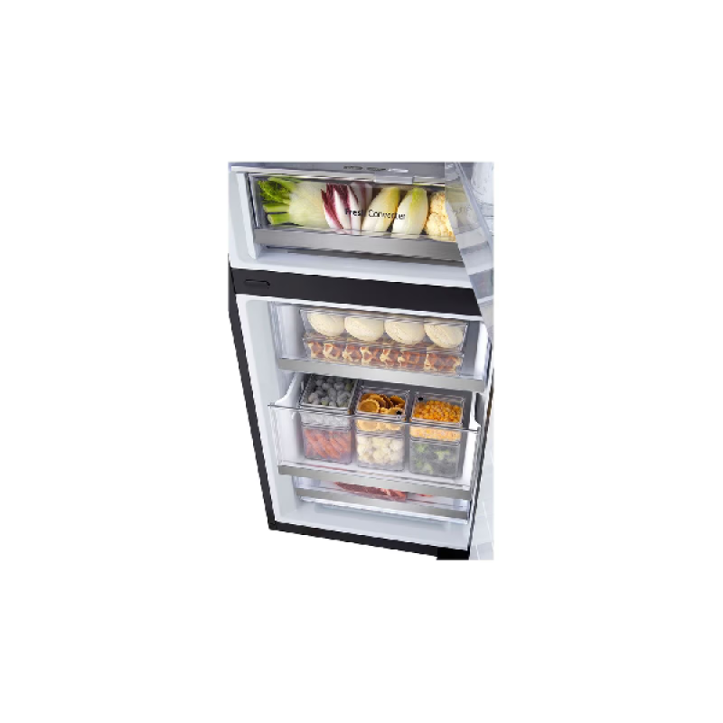De LG GBG5160CEV is een stijlvolle koel-vriescombinatie in een elegante zwarte afwerking. Met een totale inhoud van 349 liter biedt dit apparaat voldoende ruimte voor al je verse en bevroren producten. Dankzij de innovatieve InstaView™-technologie kun je met twee keer kloppen op het glazen paneel de binnenkant bekijken zonder de deur te openen, waardoor koude lucht behouden blijft en energie wordt bespaard. De DoorCooling+™-functie zorgt voor een snellere en gelijkmatigere koeling door luchtopeningen aan de voorkant, wat resulteert in een stabielere temperatuur en langere versheid van je etenswaren. Bovendien past de Smart Inverter Compressor™ de motorsnelheid aan voor efficiënte koeling en energiebesparing, met een garantie van 10 jaar voor langdurige prestaties. De afmetingen van dit model zijn 595 x 2030 x 675 mm (BxHxD), waardoor het perfect past in moderne keukens