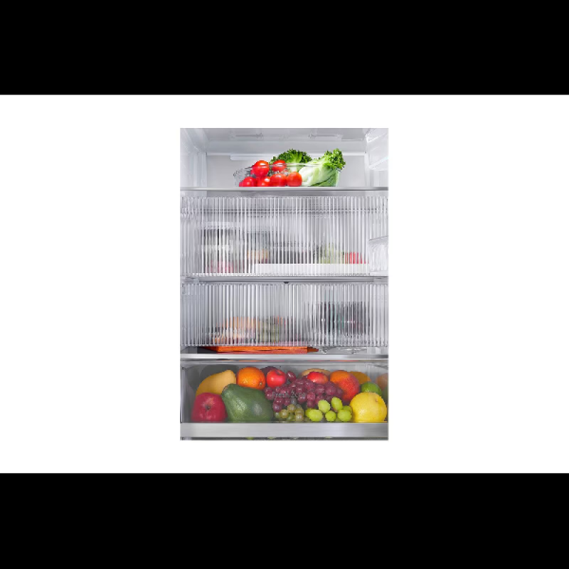 De LG GBG5160CEV is een stijlvolle koel-vriescombinatie in een elegante zwarte afwerking. Met een totale inhoud van 349 liter biedt dit apparaat voldoende ruimte voor al je verse en bevroren producten. Dankzij de innovatieve InstaView™-technologie kun je met twee keer kloppen op het glazen paneel de binnenkant bekijken zonder de deur te openen, waardoor koude lucht behouden blijft en energie wordt bespaard. De DoorCooling+™-functie zorgt voor een snellere en gelijkmatigere koeling door luchtopeningen aan de voorkant, wat resulteert in een stabielere temperatuur en langere versheid van je etenswaren. Bovendien past de Smart Inverter Compressor™ de motorsnelheid aan voor efficiënte koeling en energiebesparing, met een garantie van 10 jaar voor langdurige prestaties. De afmetingen van dit model zijn 595 x 2030 x 675 mm (BxHxD), waardoor het perfect past in moderne keukens