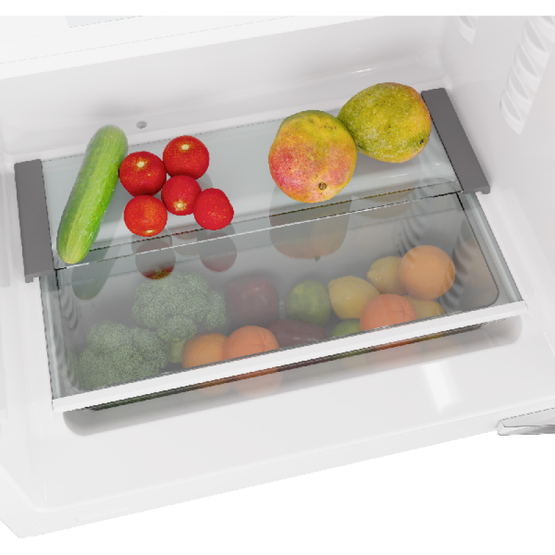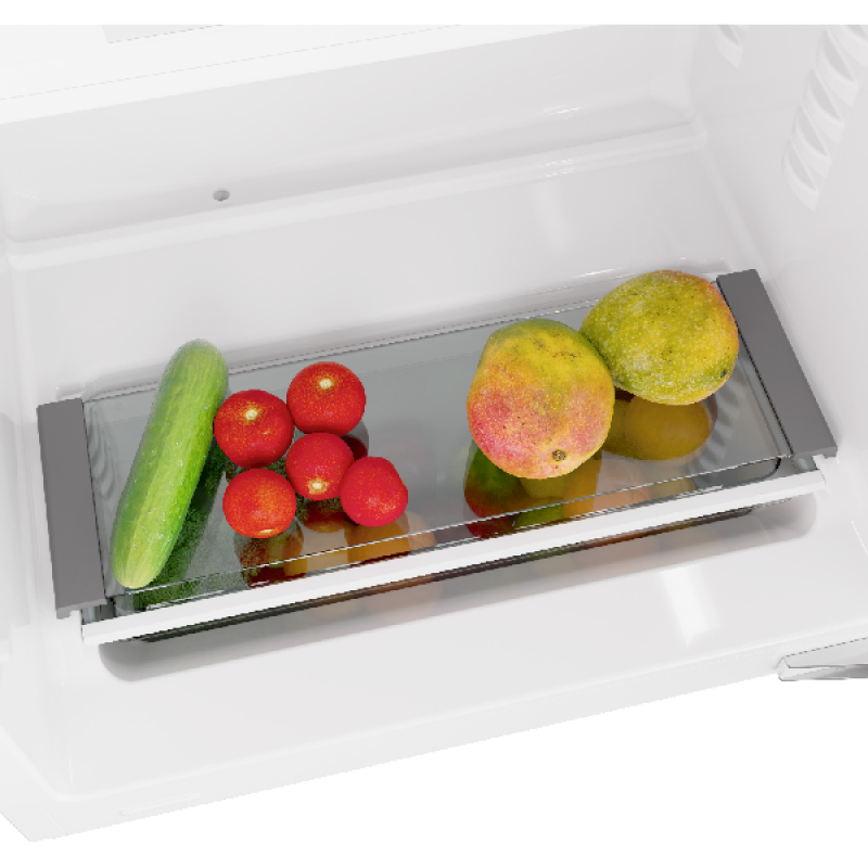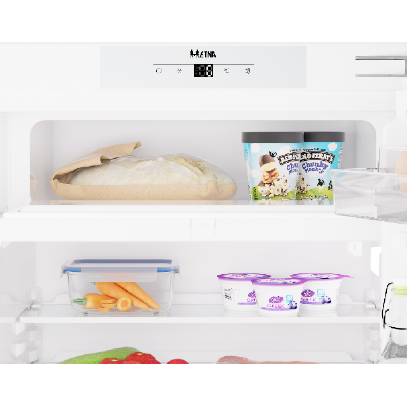 Geniet van het gemak van een koelkast onder je aanrecht met de ETNA KVO682. Dit onderbouwmodel is in hoogte verstelbaar, waardoor hij onder de meest aanrechtbladen past. Daarnaast is de draairichting van de deur te wijzigen en heeft het apparaat een deur-op-deur-systeem. Hij is compact, maar heeft toch een capaciteit van 104 liter. Zo heb je voldoende plek voor je dagelijkse boodschappen, die je handig plaatst op de plateaus van veiligheidsglas (waarvan er 2 in hoogte verstelbaar zijn voor meer flexibiliteit), in de deurvakken of in de transparante vershoudlade. Dankzij de SuperCool-functie wordt het vermogen tijdelijk opgeschroefd en worden nieuwe producten razendsnel gekoeld, zodat voedingswaarden beter behouden blijven. Ook heeft dit model een vriesvak van 17 liter, inclusief een FastFreeze-functie waarmee je boodschappen heel snel invriest. En met een geluidsniveau van slechts 38 decibel is deze koelkast ook nog eens heerlijk stil.