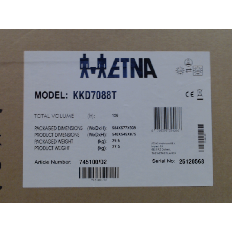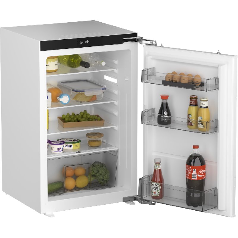 De kleine KKD7088T inbouwkoelkast van ETNA zal discreet staan in een moderne inbouwkeuken. Met zijn standaardafmetingen van 54,5 x 87,6 x 54,5 cm past hij gemakkelijk onder een werkblad van 90 cm. Hij is dus ideaal voor kleine keukens. Hij heeft een omkeerbare deur waarmee je de openingsrichting kan aanpassen aan de opzet van je keuken en een deur-op-deur scharniersysteem om de voorkantpanel eenvoudig te installeren. Deze koelkast beschikt over één compartiment met een totaal volume van 126 liter. Binnenin beschikt hij over 3 ultrabestendige glazen leggers waarvan 2 in hoogte verstelbaar. Zo kan je de opslagruimte naar eigen inzicht verdelen en organiseren. Onderaan bevindt zich een vershoudlade, ideaal voor het bewaren van groenten en fruit. De deur bevat 3 bakken voor een optimale organisatie van al je potten en flessen.