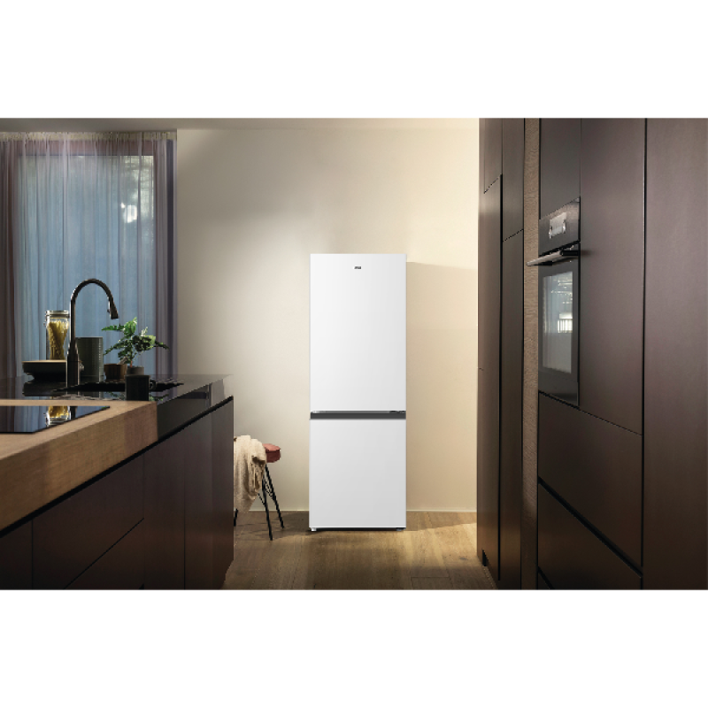De ETNA KCV343WIT is een vrijstaande koel-vriescombinatie met een strak wit design dat goed past in kleinere keukens, studio’s of studentenkamers. Met afmetingen van 49,5 x 143 x 56,2 cm (B/H/D) neemt het toestel weinig vloeroppervlak in en plaats je het eenvoudig tegen een wand of in een nis. De verwisselbare deurscharnieren maken zowel links- als rechtsdraaiende montage mogelijk, waardoor je flexibel blijft bij de plaatsing. Het slanke ontwerp combineert een functionele indeling met een rustige uitstraling die aansluit bij uiteenlopende keukenstijlen.