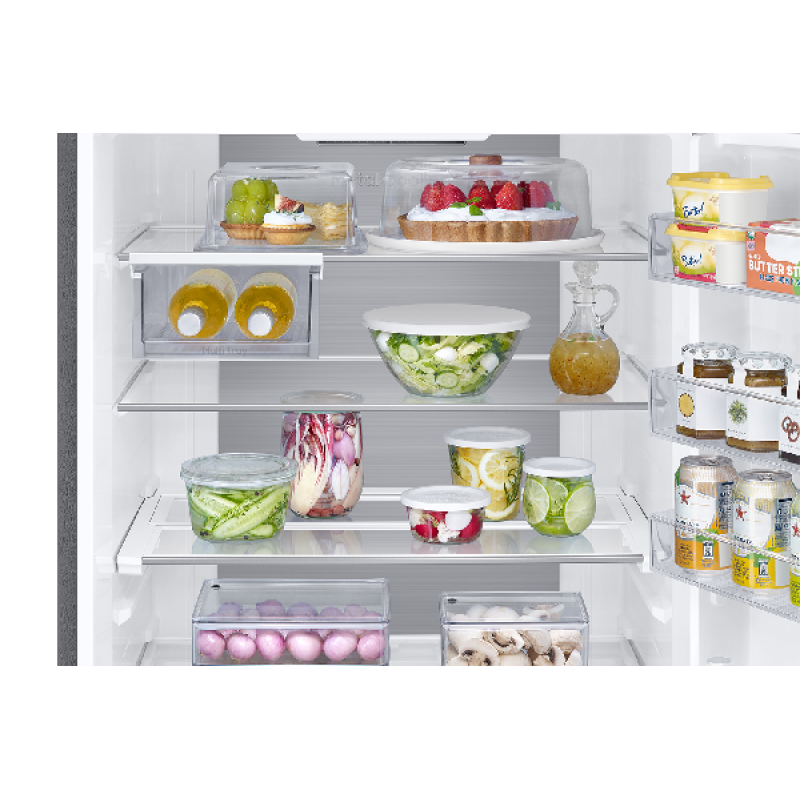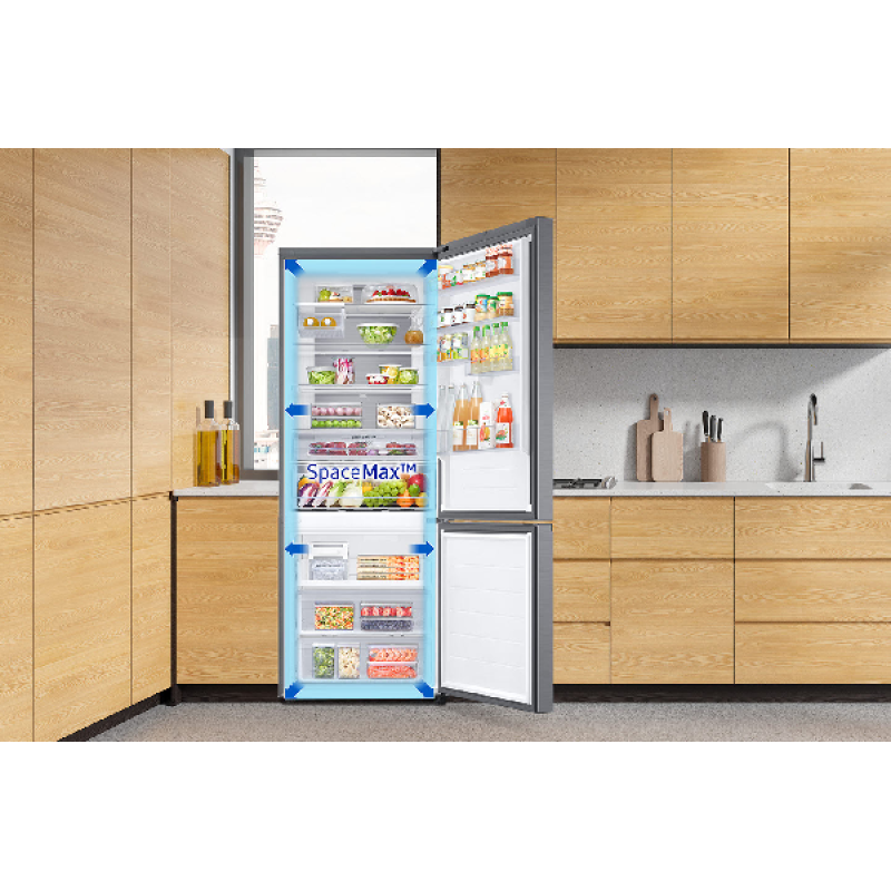 Geniet van meer ruimte voor al jouw boodschappen met de extra brede Samsung RB53DG706AS9EF. Deze koel-vriescombinatie is maar liefst 75,9 cm breed en heeft ook nog eens een SpaceMax-ontwerp, wat resulteert in een inhoud van niet minder dan 538 liter! Door de 2 afzonderlijke koelcircuits (het Twin Cooling Plus-systeem) worden de bewaaromstandigheden verbeterd en vindt er geen overdracht van geuren en smaken plaats. En over optimale bewaaromstandigheden gesproken, dit model heeft een Optimal Fresh+lade voor al je vlees-, vis- en groenteproducten. Ontdooien is dankzij No Frost niet nodig, want dat neemt deze koelkast zelf voor zijn rekening. Energie besparen wordt je dankzij de AI Energy Mode van de SmartThings-app wel heel gemakkelijk gemaakt. Die geeft je namelijk een nauwkeurig overzicht van jouw verbruik en past de compressorsnelheid en ontdooifunctie aan op je gebruikspatroon en de omstandigheden.