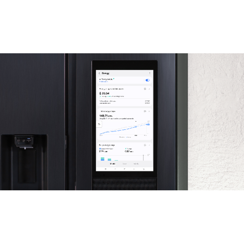 Dankzij het innovatieve Family Hub-scherm op de rechterdeur bedien je eenvoudig je Samsung-koelkast, bekijk je je agenda, stream je muziek of controleer je de inhoud zonder de deur te hoeven openen. Via de SmartThings-app koppel je de koelkast aan je smartphone en beheer je instellingen, waar je ook bent. De AI Energy Mode past het energieverbruik slim aan en geeft je inzicht via de app. Bij stroomuitval blijft de inhoud tot 5 uur veilig bewaard. Verder heb je met de ingebouwde water- en ijsdispenser altijd koud water en ijsblokjes binnen handbereik, zonder de deur te hoeven openen.