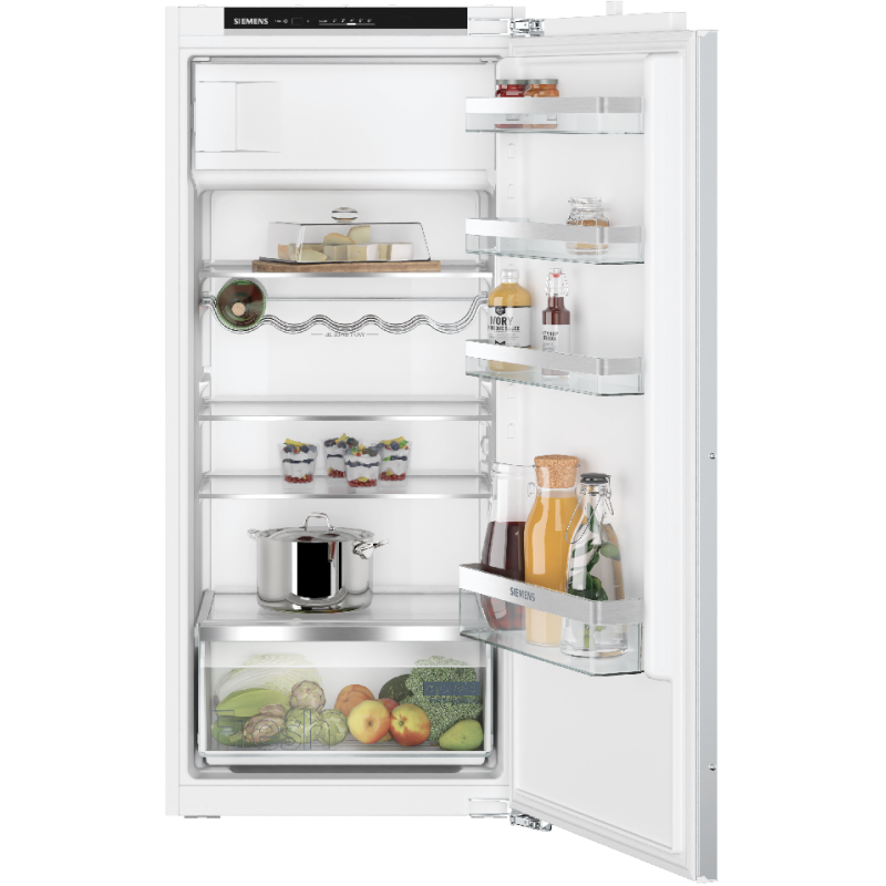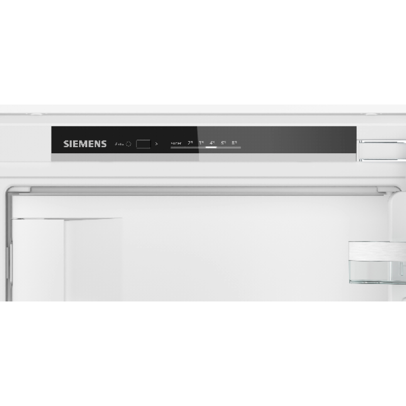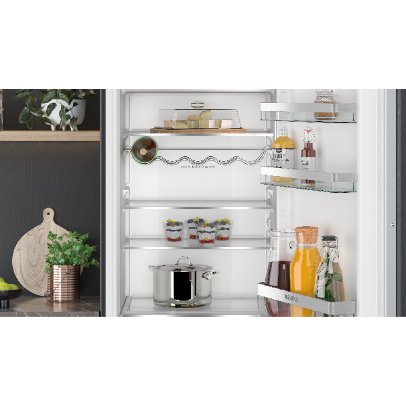 De Siemens KI42LVFE0 is een inbouwkoelkast met een compact vriesvak. De koelkast bevat 5 plateaus die gemaakt zijn van sterk en onderhoudsvriendelijk veiligheidsglas. Als er iets omkiept zorgt dit glas er namelijk voor dat het morsen beperkt blijft en zich niet door de koelkast verspreidt. Daarnaast zijn 4 plateaus in hoogte verstelbaar, waardoor je makkelijk een hoge pan kwijt kan. De ingebouwde ledverlichting is aan de voorzijde van de koelkast geplaatst. Hierdoor heb je als de koelkast vol is nog steeds goed zicht op de inhoud.