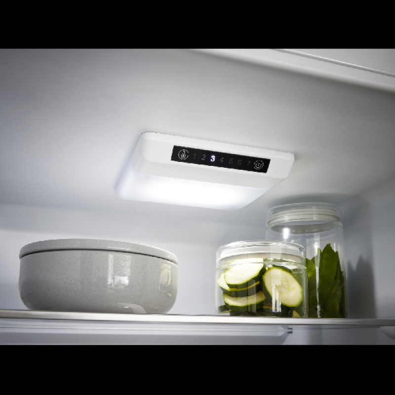 De inbouw koel-vriescombinatie KBK 17711 E van Koenic past discreet in elke inbouwkeuken, netjes weggewerkt achter een kastdeur. Hij biedt ruim voldoende plaats voor al je gekoelde en diepvriesproducten. Met een hoogte van 177,5 cm en een breedte van 55,3 cm heeft hij standaardafmetingen en past hij vlot tussen je andere keukenapparaten. Het koelgedeelte bovenaan heeft een inhoud van 182 liter en is ingedeeld in 5 glazen leggers, waarvan 4 in hoogte verstelbaar, een groente- en fruitlade, en 4 deurvakken voor flessen en potjes. Onderin bevindt zich de diepvriezer met een inhoud van 56 liter, verdeeld over 3 lades van verschillende grootte, om al je diepvriesproducten overzichtelijk op te bergen.