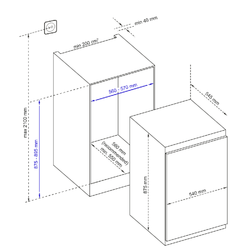OK. OBR8836D - Inbouw Koelkast zonder vriesvak - Nishoogte 89.5 cm