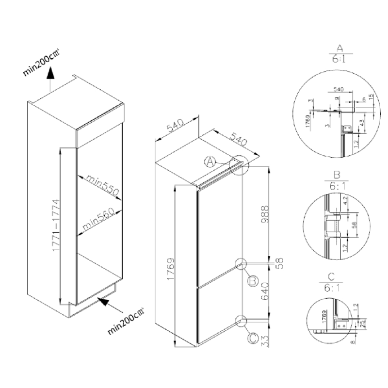 Producttype Inbouw koel-vriescombinatie