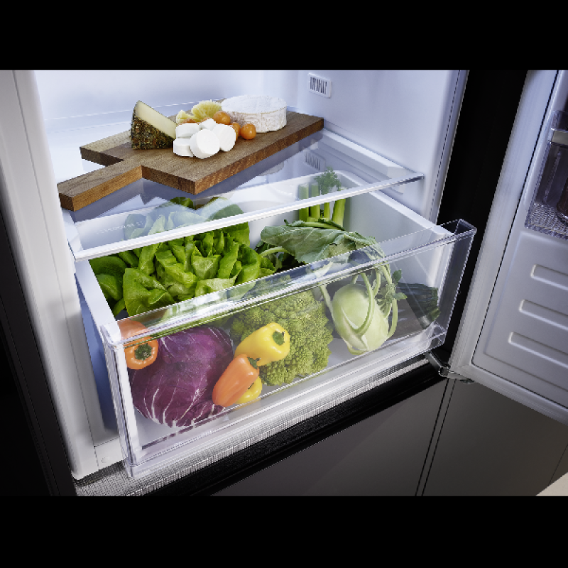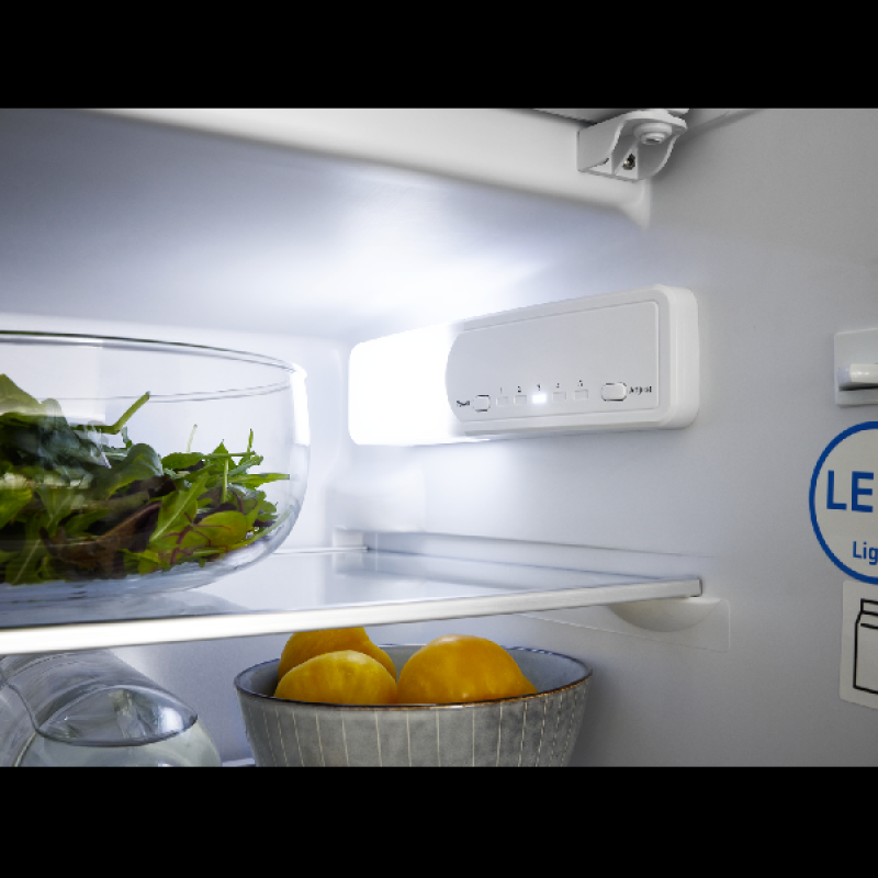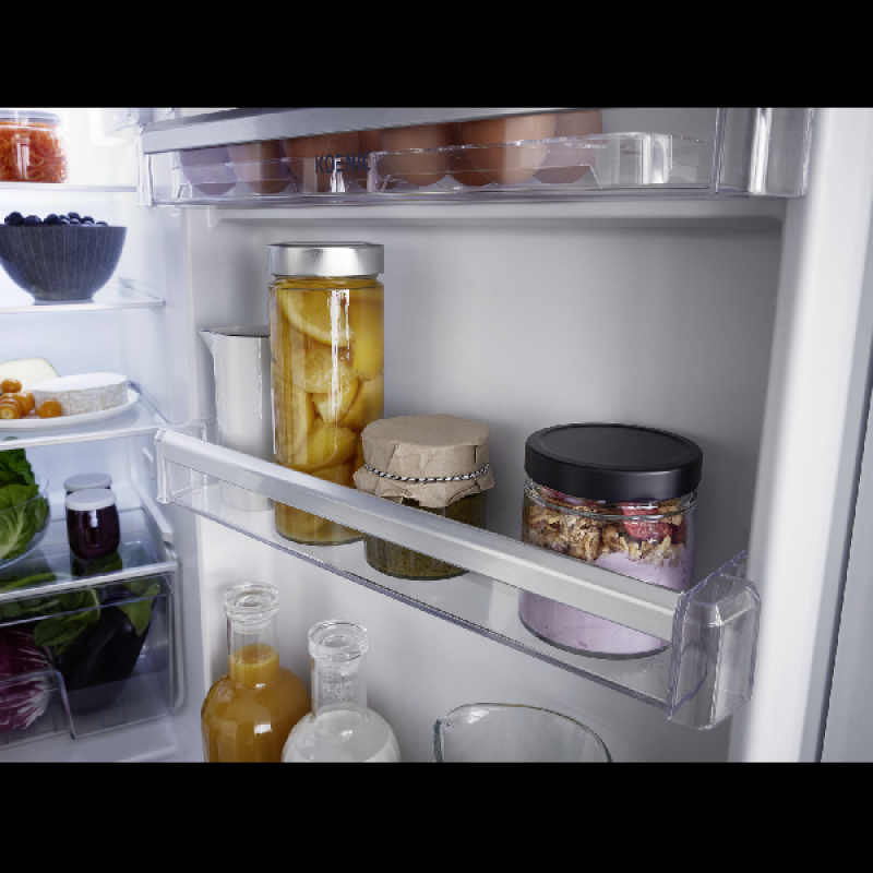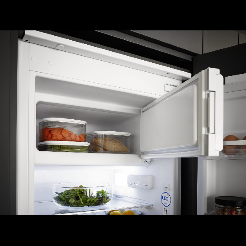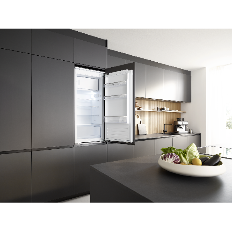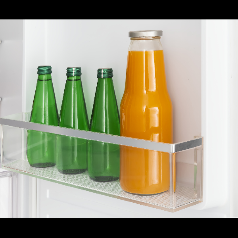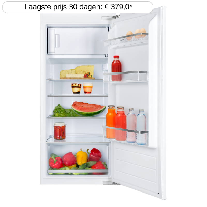 De inbouw koel-vriescombinatie KBK 1221 E van Koenic past discreet in elke inbouwkeuken, netjes verborgen achter een kastdeur. Hij biedt voldoende ruimte om al je gekoelde en diepvriesproducten overzichtelijk op te bergen. Met een hoogte van 177,5 cm en een breedte van 55,3 cm heeft hij standaardafmetingen en past hij vlot tussen je andere keukentoestellen. Het koelgedeelte bovenaan heeft een inhoud van 182 liter en is ingedeeld in 5 glazen leggers, waarvan 4 in hoogte verstelbaar, een lade voor groenten en fruit, en 4 deurvakken voor flessen en potjes. Onderin bevindt zich het vriesgedeelte met een inhoud van 56 liter, verdeeld over 3 lades van verschillende grootte om je diepvriesproducten efficiënt te bewaren.