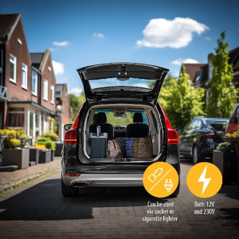 12V & 230V inbegrepen – eenvoudig te gebruiken in de auto of op de camping.