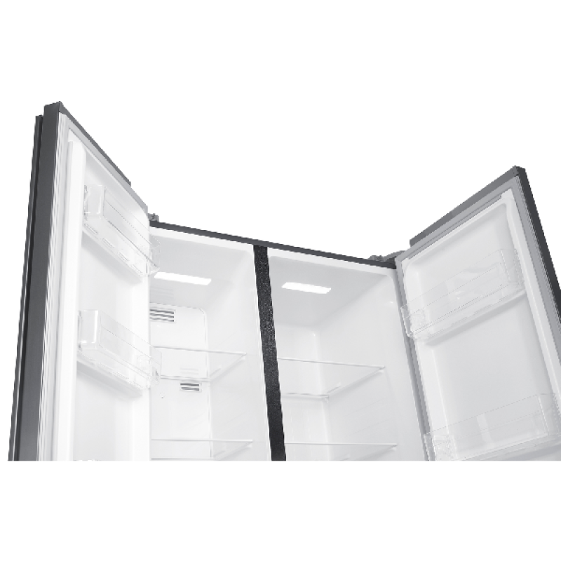De Koenic KDD 171 D IN NF Side-by-Side koelkast in inox biedt veel ruimte en modern gebruiksgemak. De totale inhoud van 442 liter bestaat uit een koelgedeelte van 291 liter en een vriesgedeelte van 151 liter. Dankzij de NoFrost-technologie blijft ijsvorming achterwege, zodat je nooit meer hoeft te ontdooien. Het dubbele koelcircuit regelt temperatuur en luchtvochtigheid per zone, waardoor je voeding langer vers blijft. Met een geluidsniveau van 39 dB(A) werkt het toestel fluisterstil op de achtergrond. Via het digitale display stel je de temperatuur snel en nauwkeurig in. Tot slot geven de inox afwerking en de praktische side-by-side indeling niet alleen extra functionaliteit, maar ook een stijlvolle meerwaarde aan je keuken.