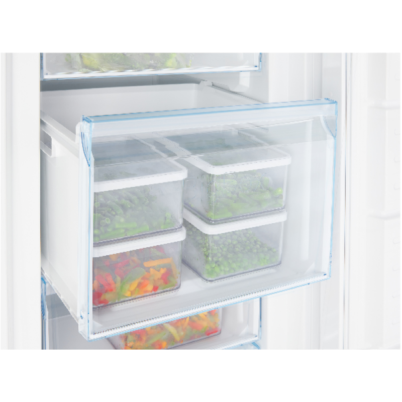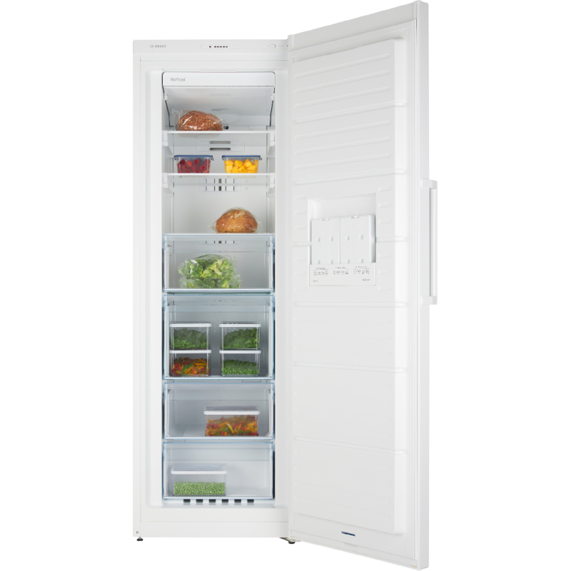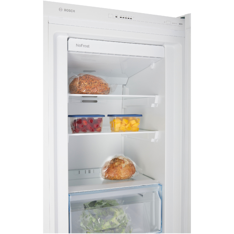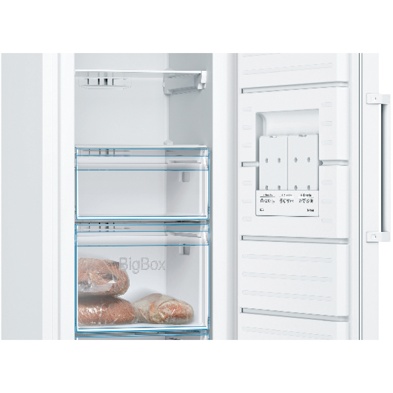 De Bosch GSN33VWEP is een vriezer met een totale inhoud van 225 liter en het NoFrost-systeem. Door het NoFrost-systeem ontstaat er geen ijsvorming in de vrieskast, hierdoor is het niet meer nodig om de vriezer te ontdooien. Een constante temperatuur is het meest belangrijke voor het vers houden van je producten. De FreshSense-sensoren meten en regelen de temperatuur in de vriesruimte. Als ze een temperatuurverandering meten, dan passen de sensoren de temperatuur aan. Het resultaat: altijd een constante temperatuur in de koelkast, ongeacht de buitentemperatuur. Ook verdeelt de ventilator van het MultiAirflow-systeem de koude lucht gelijkmatig over alle niveaus in de koel- en vriesruimte. Dit voorkomt temperatuurschommelingen en zorgt ervoor dat producten sneller koud zijn. Zo behouden ze hun smaak een stuk langer. De vrieskast is voorzien van 4 doorzichtige vriesvakken waarvan 1 BigBox-diepvriesvak zodat jij grote diepvrieswaren overzichtelijk kan opbergen en stappelen. Daarnaast biedt de VarioZone je meer flexibiliteit en ruimte dankzij de uitneembare glazen plateaus. Door het automatisch Super-vriezen voorkom je dat bevroren producten ontdooien en zorg je ervoor dat de nieuwe producten sneller bevriezen. In het geval van stroomuitval geeft de accu de koelplaat vrij om vervolgens de koele lucht vrij te geven die de tanktemperatuur op peil houdt. Je zal bij stroomuitval dus minder snel last hebben van ontdooide producten.
