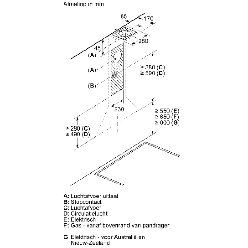 Afzuigsysteem: Luchtafvoer/Recirculatie