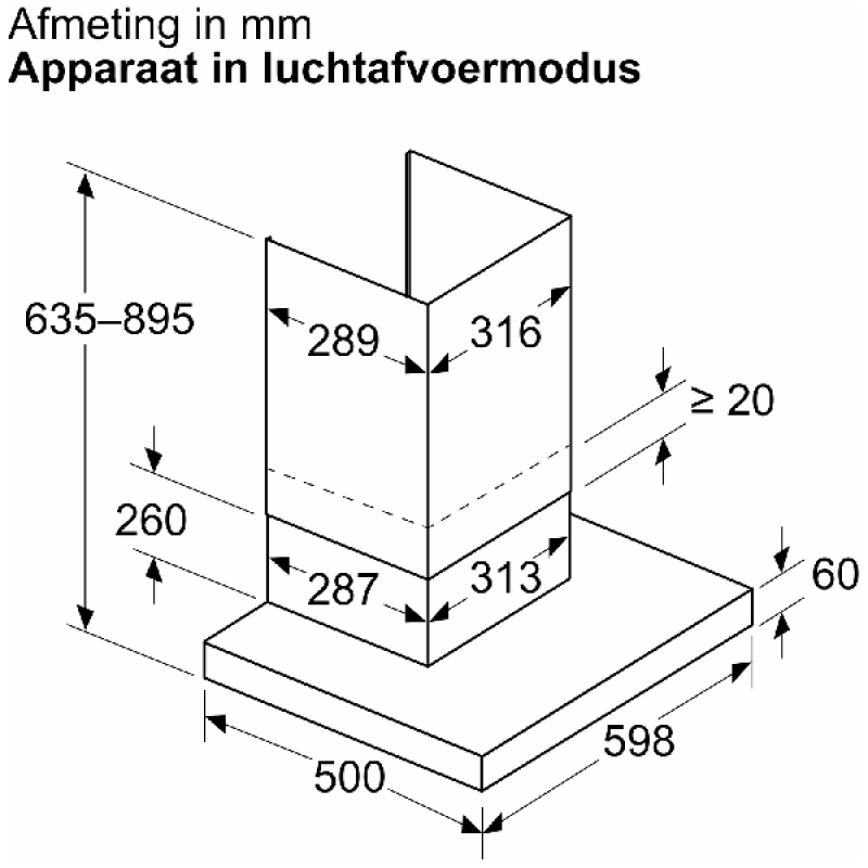 BOSCH DWB63BC30 - Afzuigkap (Muur bevestigde kap) - breedte 60 cm - 400 m³/h - 67 dB(A) Afzuigsysteem van bovenaf