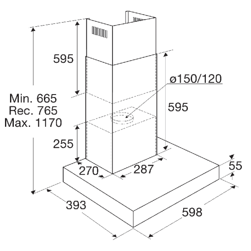 ETNA AB360ZT - Afzuigkap (Muur bevestigde kap) - breedte 60 cm - 638.5 m³/h - 66 dB(A)