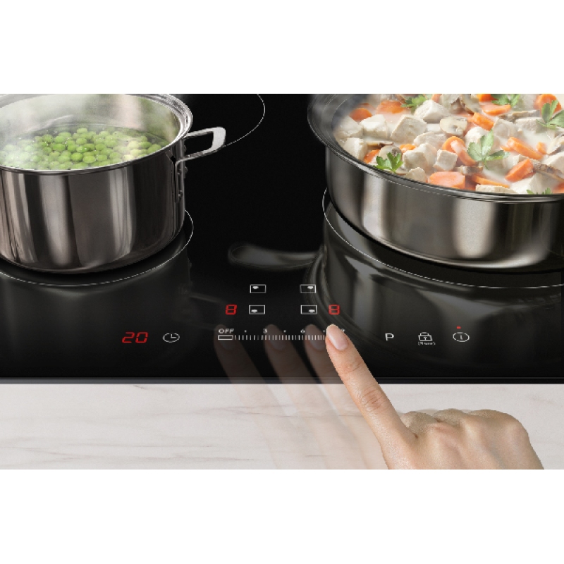 De Samsung NZ64M3707AK/UR is een inductiekookplaat met 4 kookvelden van verschillende formaten die te bedienen zijn met 9 standen. Het touch screen led display geeft de kookplaat een luxe en moderne uitstraling. Heel handig: via de Quick start functie zet je een kookzone direct op de hoogste stand aan, en via de Pauze stand zet je alle kookzones met één druk op de knop naar de laagste stand. Auto Pan Detectie geeft aan of een pan geschikt is voor de kookzone. De restwarmte-indicatie geeft aan of een kookveld nog heet is, zodat u zich hier niet aan kunt branden. Ook het handen branden aan de kookplaat is verleden tijd door het kinderslot.