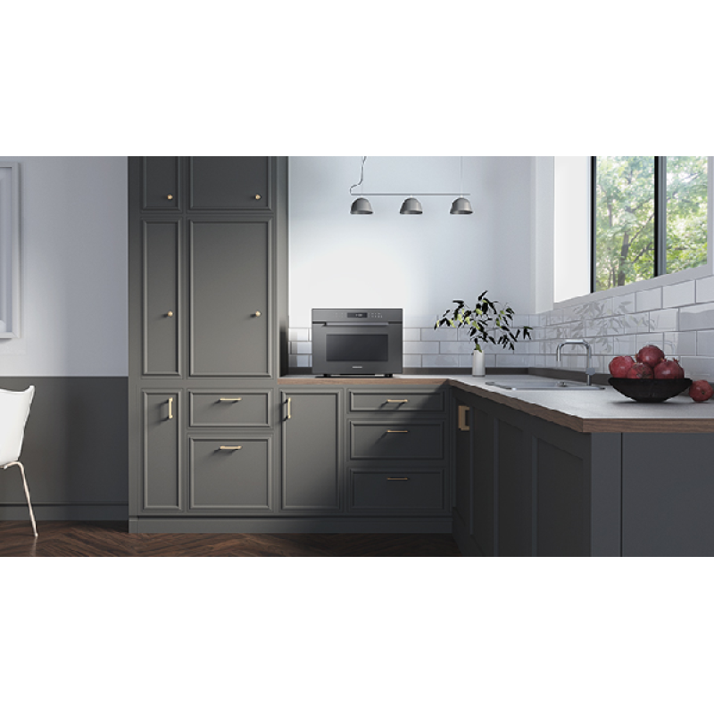 Deze combimagnetron is een echte eyecatcher in jouw keuken. Het full touch display en de neutrale kleuren geven deze magnetron een premium uitstraling. Naast het strakke design biedt deze magnetron een alles in één oplossing. Je kan ermee bakken, stomen, drogen, fermenteren en meer. Door de AirFry technologie en de meegeleverde Crusty Plate maak jij knapperige maaltijden in een handomdraai. Geen aangekoekte pannen en gevaarlijke oliespetters meer, en het eten is ook nog eens minder vet. Met de PowerGrill Duo zet jij heel gemakkelijk en snel perfect gegrilde maaltijden op tafel. Deze grill heeft namelijk maar liefst 1600 W aan kracht. Je maakt deze magnetron gemakkelijk schoon door de keramische afwerking.