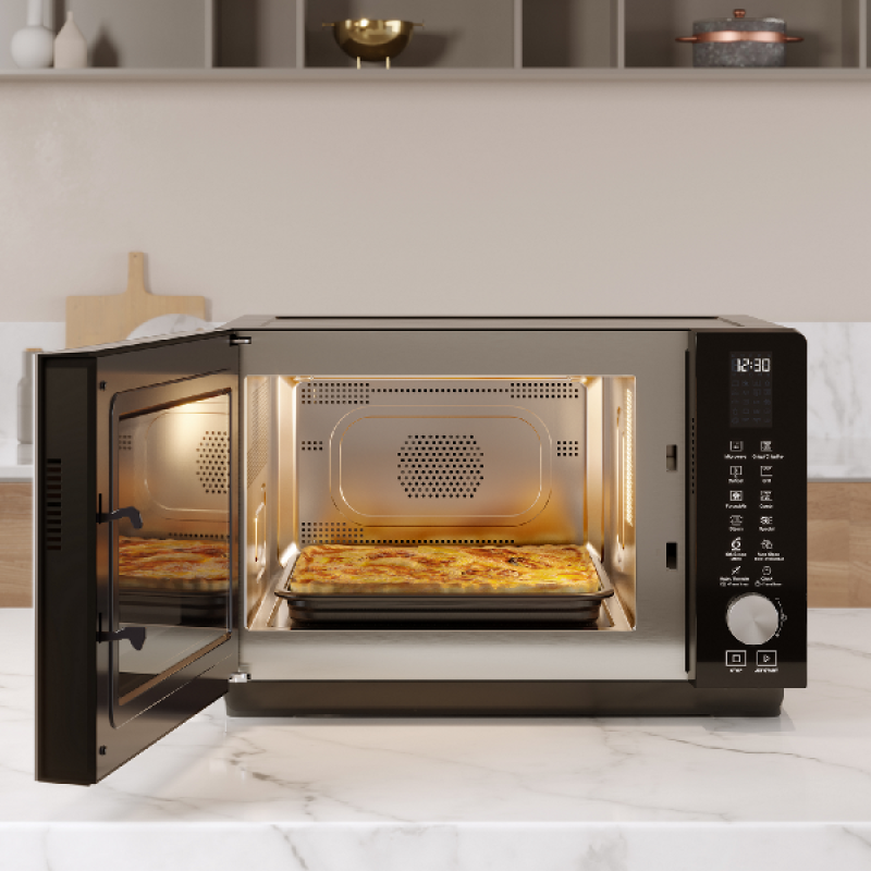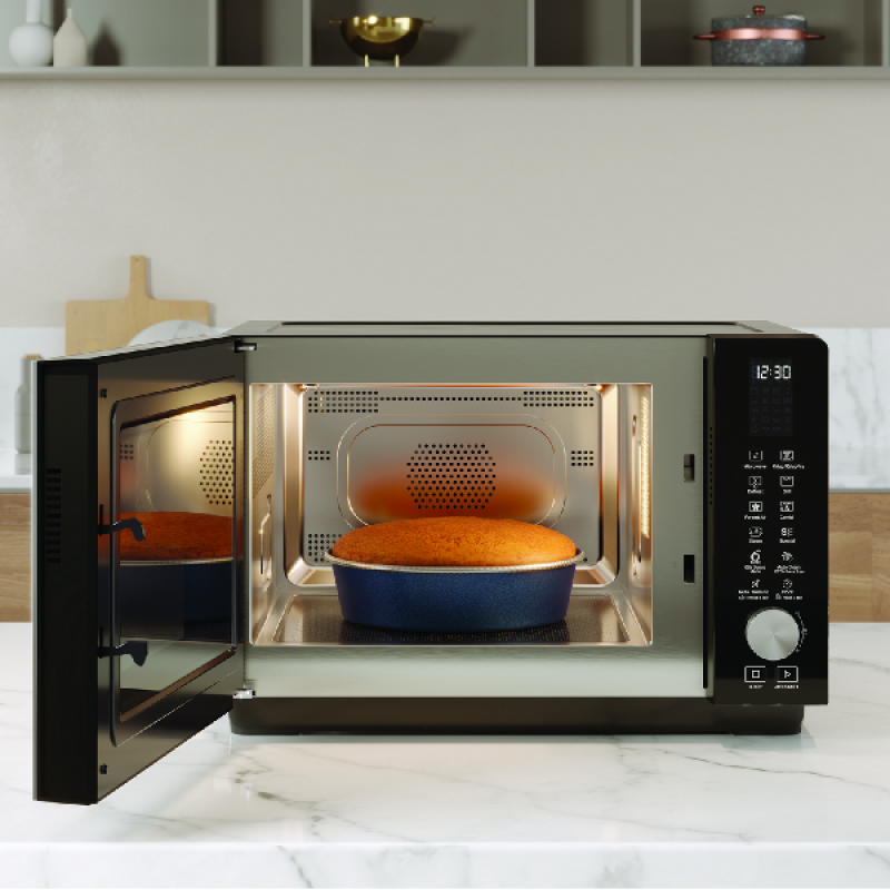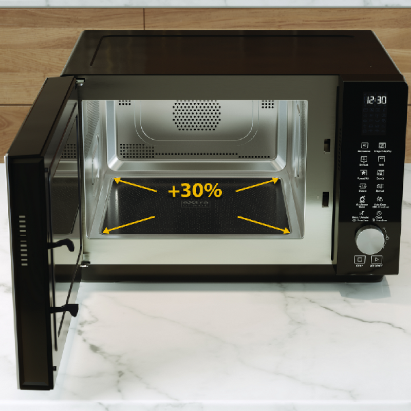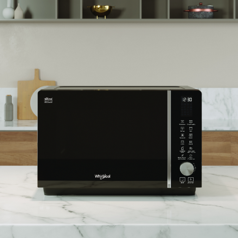 Bereid heerlijke gerechten met de Whirlpool MWF 259 B-combimagnetron. Dankzij het compacte formaat past hij zelfs in kleine keukens en met een inhoud van 25 liter is hij zeer geschikt voor kleinere huishoudens. Om de ruimte optimaal te benutten, is het draaiplateau bij dit model vervangen door een ExtraSpace-plaat die van hoek tot hoek reikt. Zo geniet jij van 30% meer ruimte. Laat je echter niet van de wijs brengen door het compacte formaat, want deze kleine krachtpatser kan veel meer dan alleen opwarmen en ontdooien. Met de tiptoetsbediening aan de rechterzijde selecteer je diverse ovenfuncties, zoals grillen en Forced Air. Je hebt echter ook toegang tot het uitgebreide 6th Sense-menu, waar je tot wel 62 automatische programma’s binnen handbereik hebt. Je bereidt dus moeiteloos uiteenlopende gerechten, van gefrituurde chicken wings, krokante pizza of zelfs je eigen yoghurt. Zelfs schoonmaken is een fluitje van een cent: met Auto Clean wordt de magnetron door middel van stoom gereinigd.